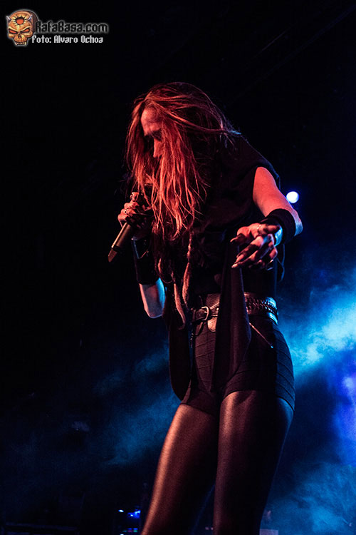 Tras el imparable paso de SAVAGE MESSIAH les tocaba el turno a los americanos HUNTRESS. Difícil papeleta se le presentaba al quinteto californiano liderado por la vocalista Jill Janus, quienes tras facturar su impactante debut "Spell Eater" en 2012 , regresaban a la Ciudad Condal para presentar su segundo largo "Starbound Beast", un plástico menos oscuro y más orientado hacia las sonoridades más tradiciones del heavy metal. Aunque me dio la sensación de que HUNTRESS no disfrutaron de una acogida tan cálida como la de los británicos, lo cierto es que temas como la inicial "Senicide", con Jill irrumpiendo en escena encapuchada y deambulando erráticamente, consiguieron captar la atención de todos los presentes. Sin duda fue su carismática vocalista quien se llevó la mayoría de las miradas, moviéndose por todo el escenario y proponiéndonos esos descomunales cambios vocales, pasando de altísimas tonalidades agudas a unos desgarradores rugidos demoniacos, dando mordiente a temas como la oscura "Destroy Your Life».