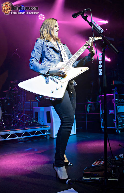 El sonido estaba siendo realmente fantástico al igual que las luces, algo que algunos agradecimos mucho. No podía faltar en esta fantástica noche el nuevo single «Apocalyptic», que ya es coreada como todo un himno, al igual que «Rock Show», acompañada en muchas ocasiones por las palmas de los asistentes. Era el momento de disfrutar del increíble estado de voz de Lzzy que en «Break In», acompañada únicamente de su teclado, nos hizo vibrar realmente incluso permitiéndose algunos alardes, así como en «Familiar Taste Of Poison» de su primer disco, en la que volvía a hacer virguerías con su voz ya con el resto de los miembros del grupo sobre el escenario.