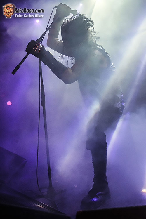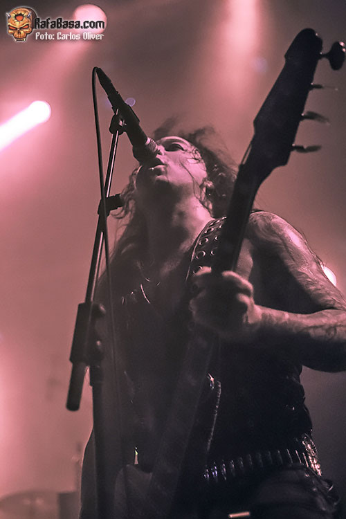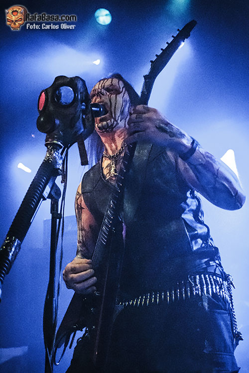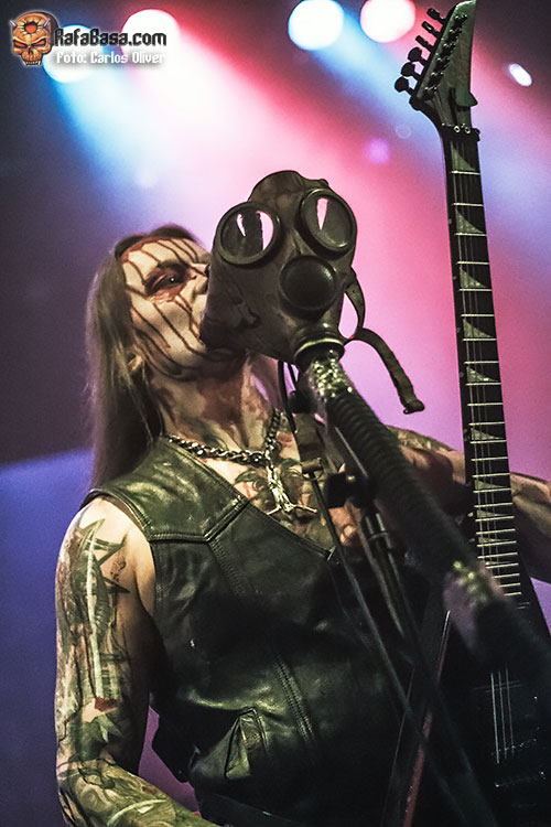 Tras arrancar la primera ovación de la noche, era el propio Helmuth el encargado de dirigirse a la audiencia para ofrecernos la primera mirada a su última entrega discográfica «Conjuring The Dead», con «Gasmask Terror», proponiéndonos un decrépito viaje a través de las sonoridades más oscuras y devastadoras. Pese a los múltiples cambios que ha sufrido la formación a lo largo de los años parece que el incombustible Helmuth ha encontrado a sus perfectos escuderos en la figura del bajista Serpenth y el guitarrista Impaler, ya que sobre las tablas se mostraron como un equipo sólido y perfectamente cohesionado, haciendo piña en el centro del escenario a la hora de embarcarse en los incendiarios desarrollos de temas como «Impaled Upon The Tongue Of Sathan».
