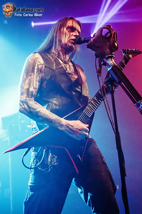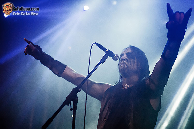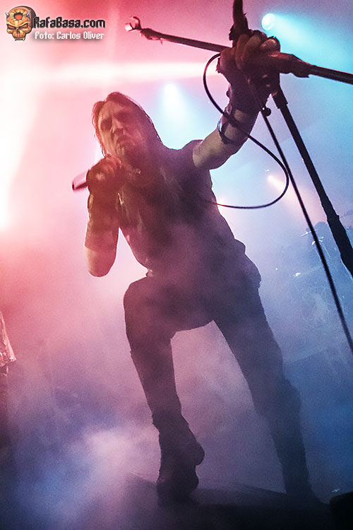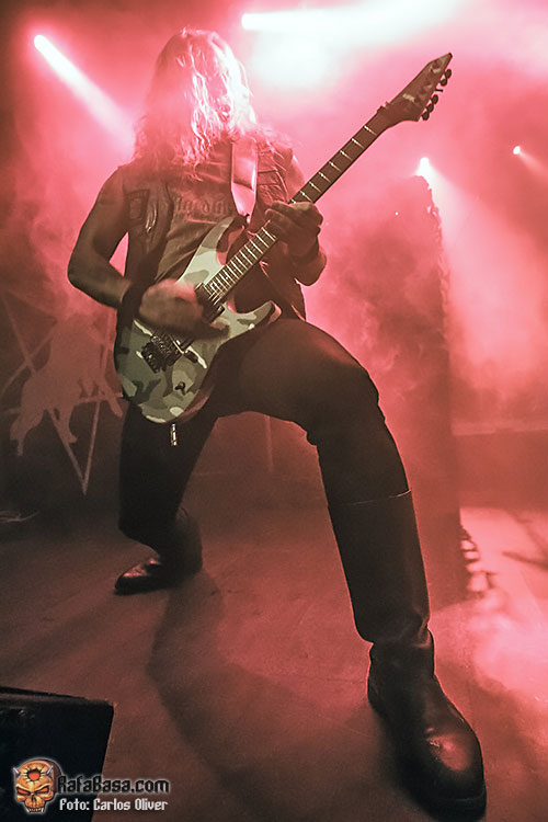Tampoco faltarían esas composiciones más siniestras y de corte demoniaco como «Cloven Hoof», que sonó certero y poderoso interpretado por Mortuus. Pero sin duda el mejor momento de la noche llegaría con la pieza más antigua que interpretaron, un abrumador «Burn My Coffin», que puso la sala literalmente patas arriba, con todo el púbico cantando mientras Mortuus extendía los brazos sobre sus incondicionales. Con el escenario convertido en el altar de una ceremonia pagana llegaba el momento de encarar la recta final de la actuación, y la elegida sería «Warschau», única licencia que se permitieron hacia el material de «Plague Angel»(2004), el plástico que significó el debut de Mortuus como vocalista del combo sueco.