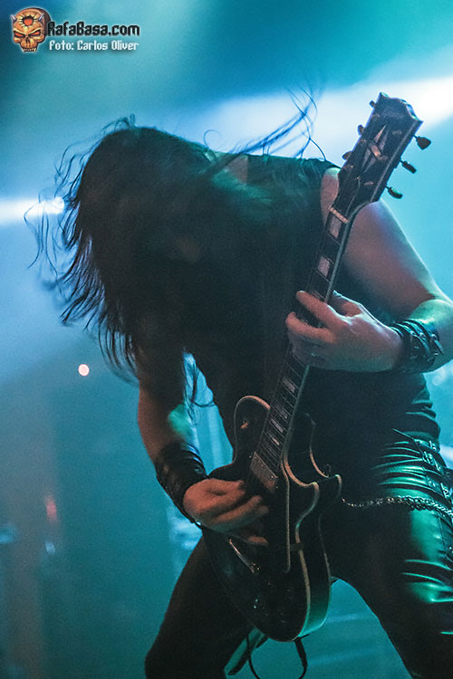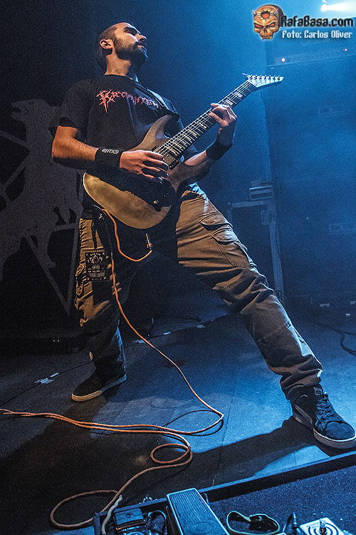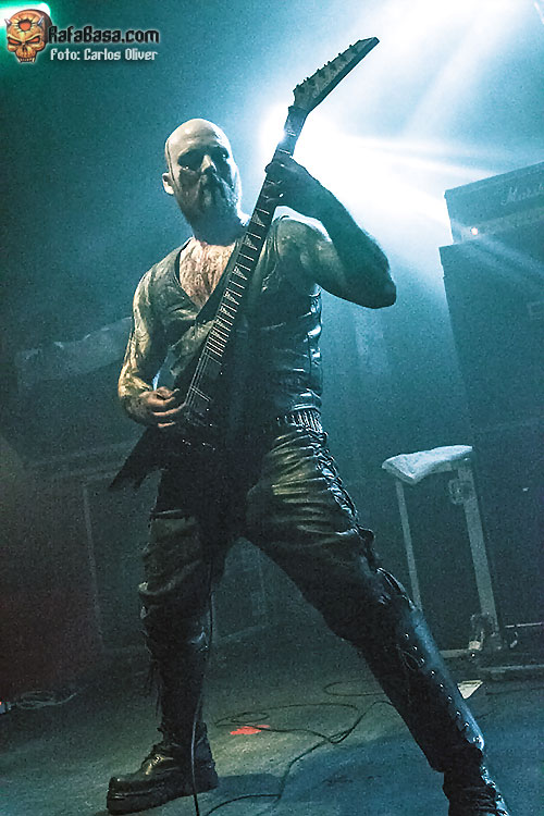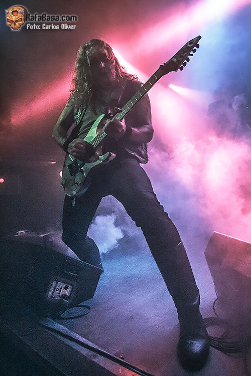 Afortunadamente a medida que fue avanzando la velada el sonido fue mejorando notablemente, permitiendo que la guitarra de Morgan pudiera acabar alcanzando el nivel de protagonismo que se merecía, y es que el veterano «hacha» se mostró en todo momento como el líder natural del combo, moviéndose por todo el escenario mientras alentaba a las primeras filas a sumergirse en las melodías de corte oriental contenidas en «The Levelling Dust», que significó su único recuerdo hacia su «Rom 5:12» de 2007. Para cualquiera que haya seguido la trayectoria de la formación sueca resulta obvia la fascinación de Morgan por la historia y la temática bélica, de forma que durante la velada no faltaron piezas como «502», que con su ritmo infernal nos proponía constantes alusiones a la Segunda Guerra Mundial.