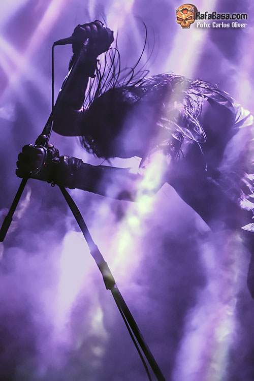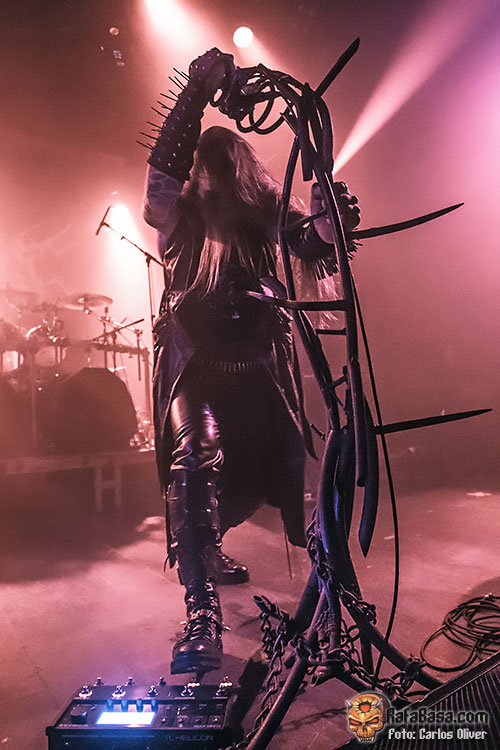 Si algo ha caracterizado la carrera de BELPHEGOR es la constancia y la coherencia que la banda ha mantenido siempre dentro de su propuesta, tanto a nivel musical como letrístico, lo que les ha granjeando el apoyo incondicional de unos seguidores verdaderamente efusivos que se dejan la piel en cada una de sus descargas. Como era de esperar no faltaron en la puesta en escena de la formación austriaca los característicos maquillajes de sus componentes, los chalecos de cuero y los cinturones de balas como parte de su indumentaria de guerra. Para ambientar al personal antes de su desembarco el cuarteto de Salzburgo optó por un interludio musical inquietante, que junto a los restos óseos que servían como decoración, acabarían confiriendo al escenario una imagen propia del averno.