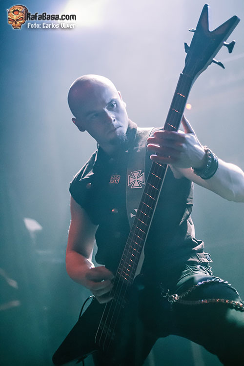 Pese a que el cuarteto salió con mucha actitud y dispuesto a ofrecernos un buen espectáculo, lo cierto es que el sonido durante los primeros compases de su actuación con temas como el marcial «The Blond Beast» fue verdaderamente deleznable, con una batería que devoraba todo a su paso y con unas guitarras que se perdían en la mezcla, haciendo que descifrar el tema que la banda estaba descargando fuera una tarea casi imposible. Ante tales perspectivas tuvo que ser Mortuus quien diera un paso al frente y se erigiera en el auténtico motor de la banda, intentando animar al respetable con la llegada del primer clásico de la noche, el implacable «Slay The Nazarene».