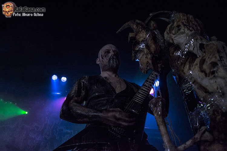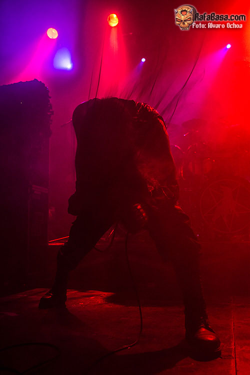 Mortuus, siempre impecable en las voces, no paró de escupir blasfemias durante toda la presentación y así fueron cayendo temas como «Frontschwein», «Burn My Coffing», «Afrika» o «Sulphur Souls» la cual contó con el diabólico Intro «The Apperance Of Spirits Of Darkness».