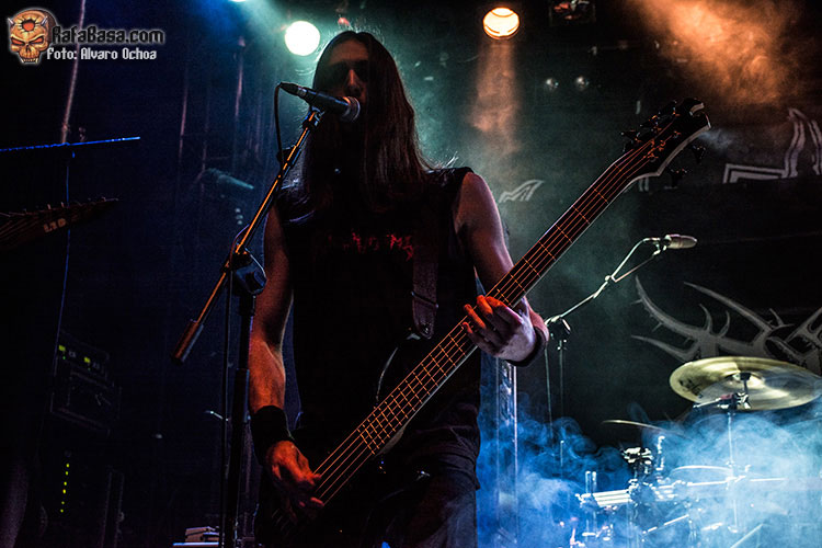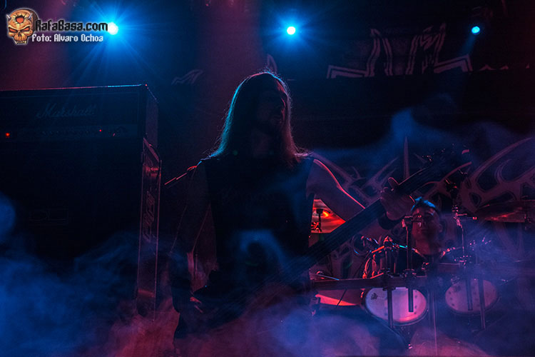 Bajo una gran nube de humo y con una tenue luz azul aparecía en escena Mortuus acompañado de Morgan, Devo y Widigs espesando el aire con su black metal cargado de maldad y convirtiendo la sala caracol en la catedral de la blasfemia.