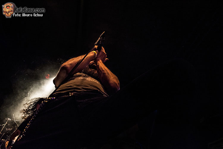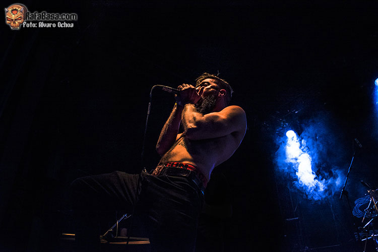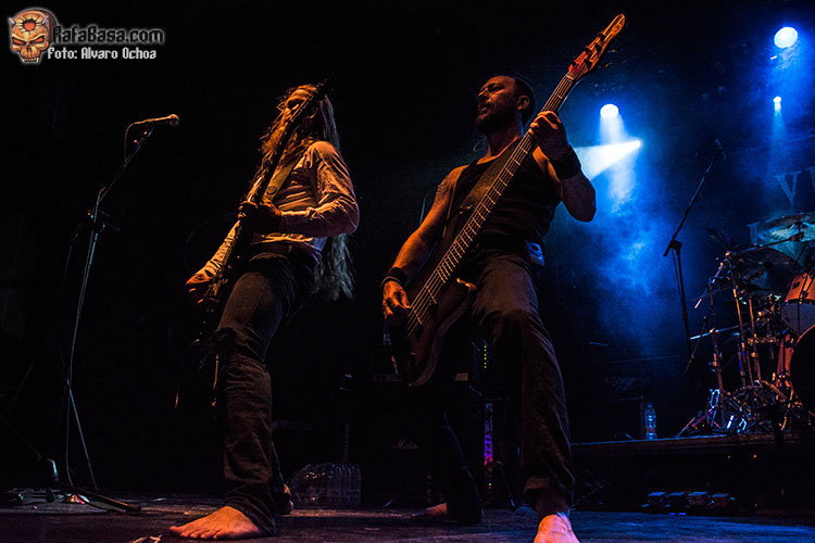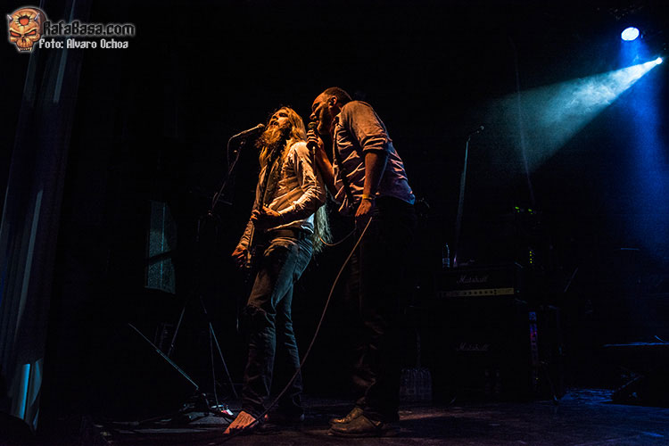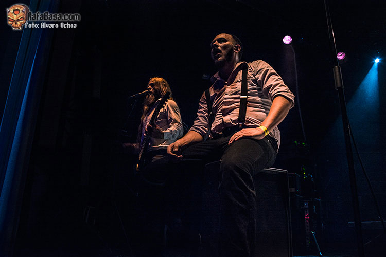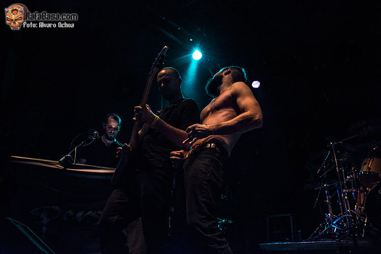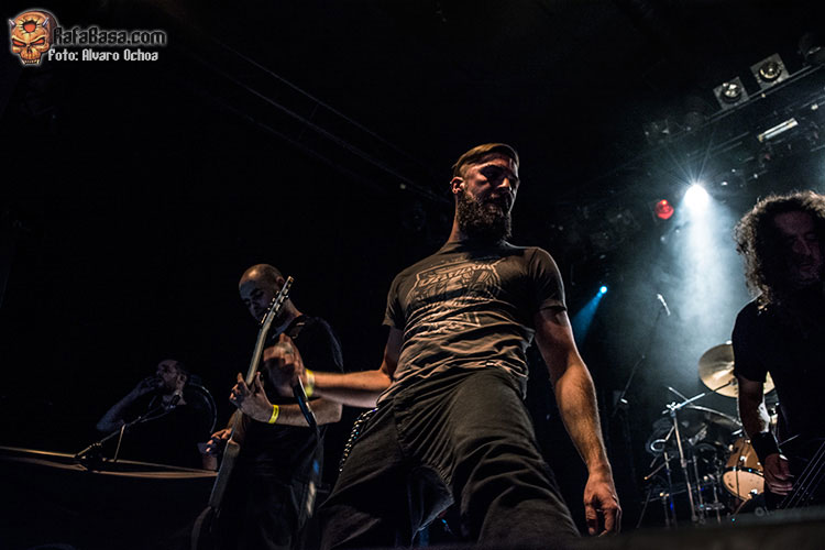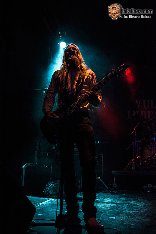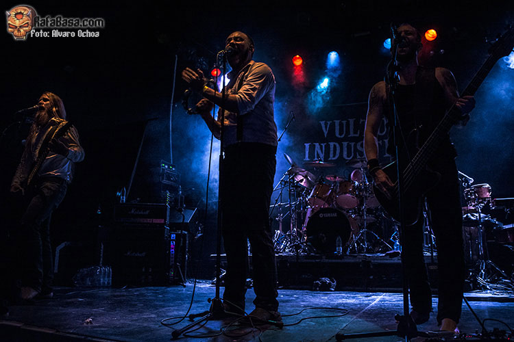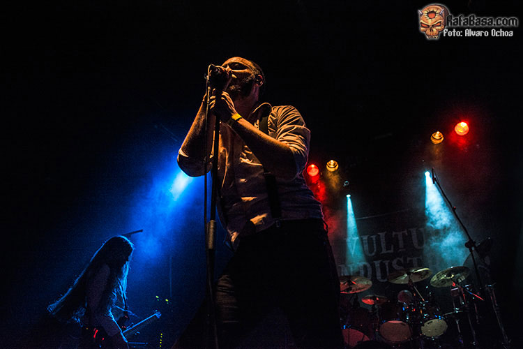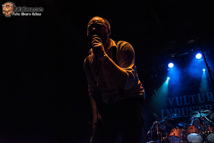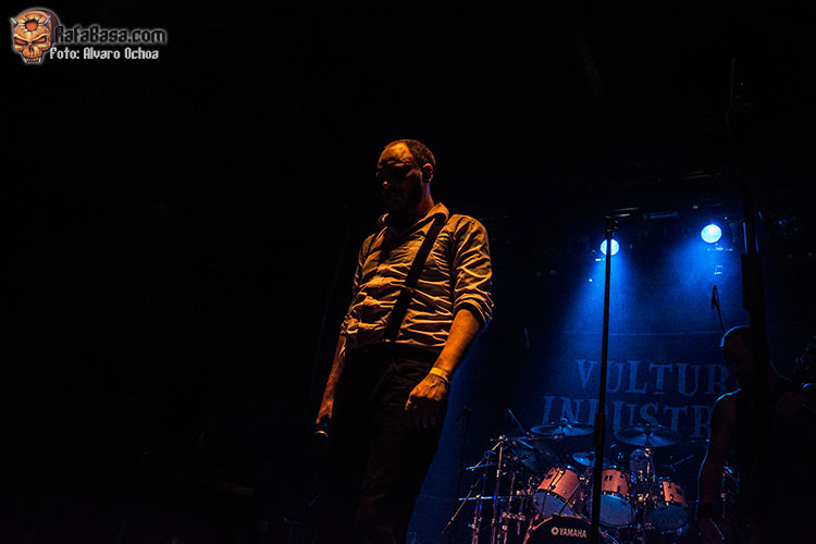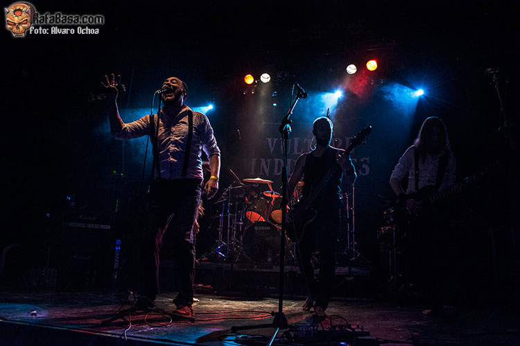 Si pudiese ponerse música a un mundo post apocaliptico-industrial-steampunk VULTURE INDUSTRIES sería su banda sonora con ese sonido oscuro, esa voz cantada de orador psicótico, esos sonidos sampleados rimbombantes, estridentes y clavicordicos, con todos sus miembros haciendo coros y con un insuperable Bjørnar Erevik Nilsen el retrato vivo de un cantante que se mueve como un muerto viviente y tiene el mismo carisma oscuro y tétrico que Beattle Juice. Innmejorables desde su primer bombazo «The Tower» seguida de una pesada, enigmática y enredada «The Hound». Sonido claro y nítido. Puesta en escena típica en ellos de camisa y tirantes. Sala con un poco más de vida pero la gente estaba bastante alejada del escenario y desconocía lo que los noruegos estaban por echarnos encima.