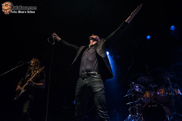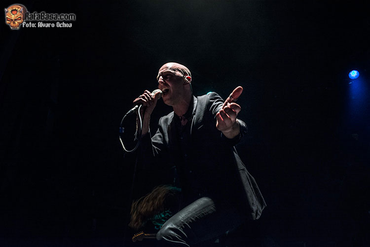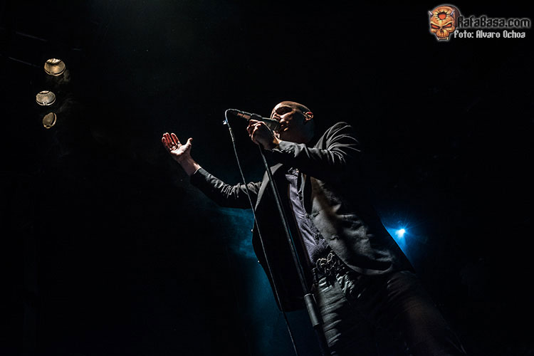 Y nos lo echaron a lo grande con «The Pulse Of Bliss» donde Erevik hizo su primera aventura al público poniendo los pelos de punta a más de una chica y empujando al respetable hacia posiciones más avanzadas de la sala. Resultado: sala completamente a los pies del cantante, que desde entonces solo supo multiplicar su gestualidad y expresionismo. En «The Bolted Door» se cogió un ampli para ponerse de pie en él y arengar a las masas con ese tono tan único en él. Sin embargo en «Blood Don’t Eliogabalus» Erevik ya era imparable ofreciéndonos «do you want to dance?» y pateándose toda la sala a ritmo bailongo errático después de haber acongojado a unos cuantos durante la parte susurrada en tonos bastante malvados. Si aún podía, la sala estaba más a sus pies después de todas sus travesuras.