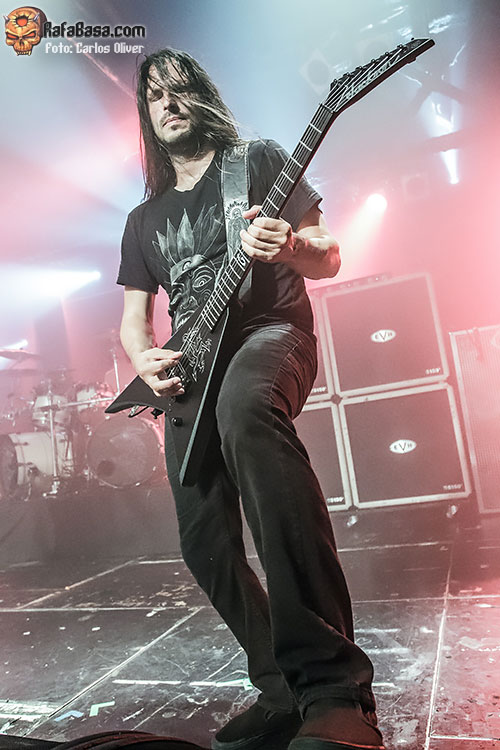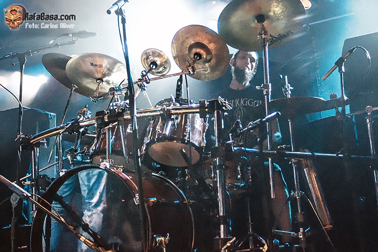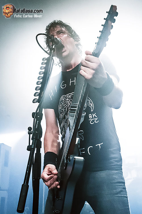 Un aspecto muy destacable del show de los franceses fue que optaron por un repertorio variado y muy dinámico, dando cabida a composiciones de todos y cada uno de sus lanzamientos. Así que la encargada de abrirnos la puerta hacia el material contenido en "The Way Of All Flesh", sería la monumental de "The Art Of Dying", que nos haría capitular irremediablemente ante su incesante catarata de imparables riffs. Tras ella era el menor de los hermanos Duplantier, Mario, sería el encargado de acaparar todas las atenciones a lo largo de un vistoso solo en el que el percusionista nos ofreció una buena muestra de sus recursos técnicos. Precisamente aprovechando sus poderosos redobles sus compañeros se le sumarían para centrar su objetivo sobre "Toxic Garbage Island", que marcaría un nuevo punto culminante dentro de un show repleto de agresividad y pegada.