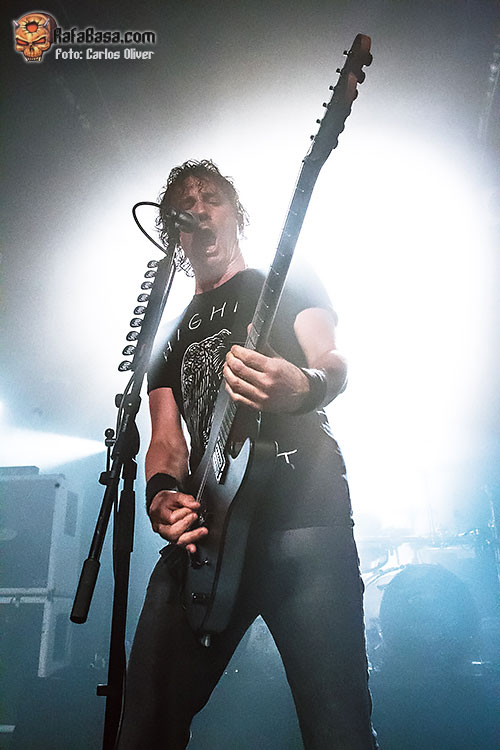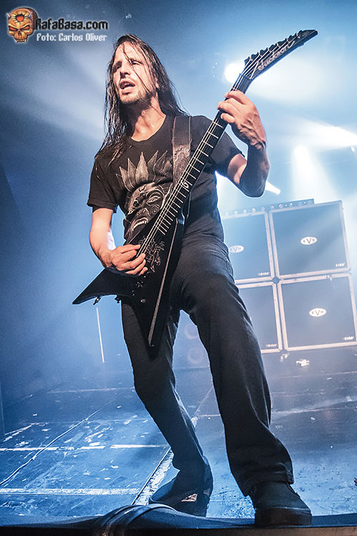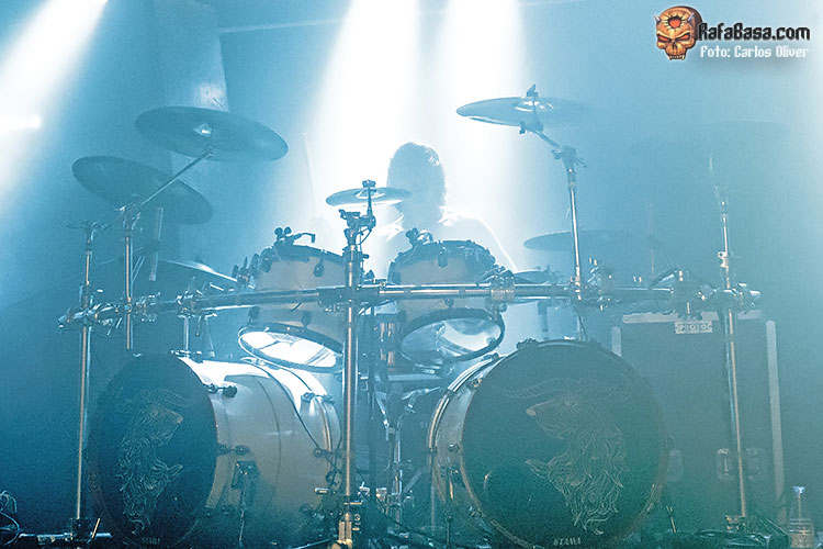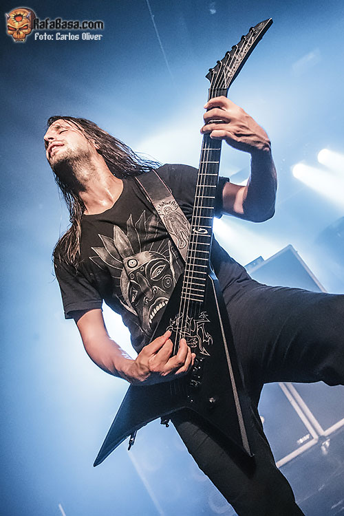 Ante una sala prácticamente llena y con un escenario completamente sumido en la penumbra la descarga arrancaba con la implacable potencia de "Ocean Planet", con la banda generando semejante caudal de energía que no tardó en contagiarse a una audiencia devota y entregada, que apoyó constantemente a los galos llevándolos en volandas hacia un incontestable triunfo. Como una máquina perfectamente engrasada y liderados por un impresionante Joe Duplantier, GOJIRA nos ofrecieron una auténtica exhibición de tablas y carisma, conectando en todo momento con sus incondicionales para firmar un arranque arrollador con piezas como " The Axe", que se convertiría en la primera referencia de su último plástico "L’ Enfant Sauvage".