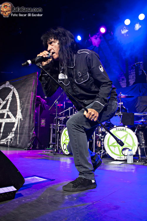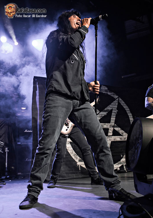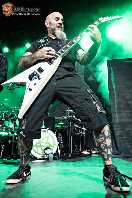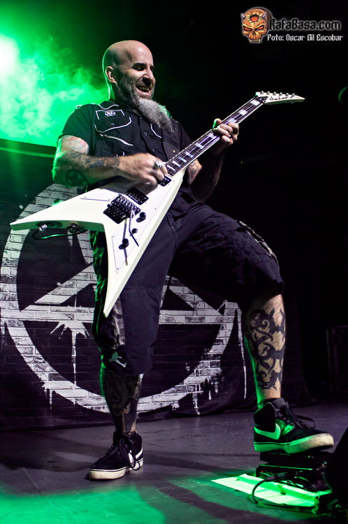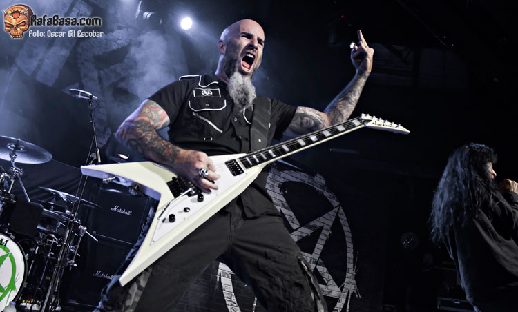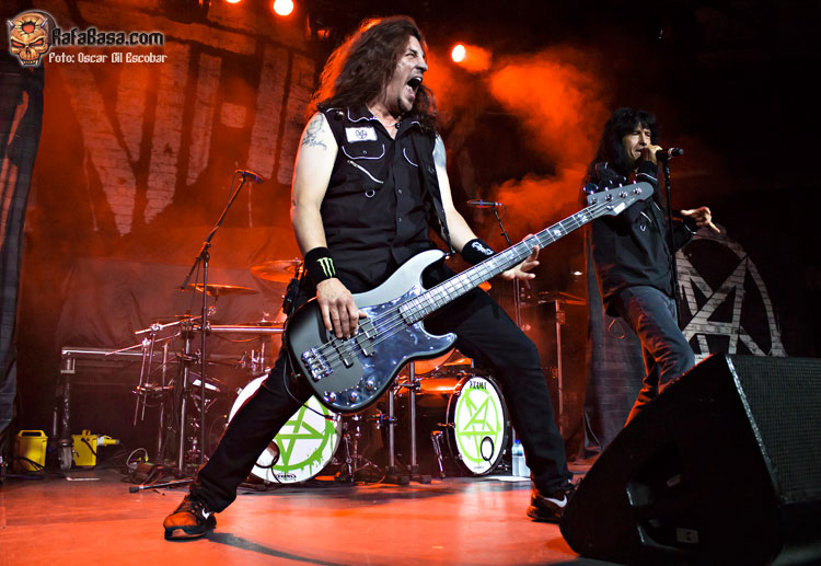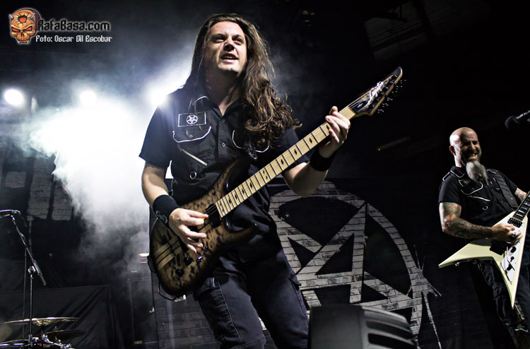 Hasta ahora muy bien, Joey Belladona sigue siendo un excelente cantante, tanto a nivel vocal como de puesta en escena, y a según que distancia le vieras, parece que se conserva en formol. Por el bajista Frank Bello tampoco parecen pasar los años ya que no paraba de animar constantemente el cotarro corriendo de un lado a otro sin descuidar su labor a las cuatro cuerdas, y el guitarrista Scott Ian aunque sigue siendo un músico muy sólido y experimentado que cumple con creces su papel, no puedo evitar decir que le vi más parado que en otras ocasiones. No obstante para nada desmereció su actuación ni la de la banda. Respecto a John Dette poco que decir, está claro que no es Charlie Benante y hubo momentos en los que se notó, pero cumplió muy bien con su cometido, de manera muy profesional, y las canciones no sonaron escasas o vacías ni se vio mermado el resultado final. El que ya no me convenció tanto fue el guitarrista Jon Donais, me pareció soso, no le vi asentado en el grupo y sus solos me sonaron cuanto menos ramplones. Podría decir que necesita tiempo pero lleva ya más de dos años en el grupo.