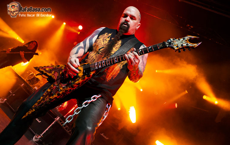 No estoy de acuerdo en que Gary Holt sea un reemplazo pobre, creo que es un máquina y le vi sudar por todos los poros, además de ser una leyenda del thrash con Exodus. Es verdad que sin Jeff se echa en falta algo muy importante pero creo que Gary hace un trabajo más que digno. Lo que no me gusta mucho, y es el tercer concierto en el que lo constato, es que a Kerry se le escucha como una apisonadora y Gary siempre suena super bajito, lo que se nota sobre todo cuando llegan los solos. Aunque hacia la parte final del concierto me pareció que mejoró un poco ese aspecto pero como ya digo suele ser habitual.