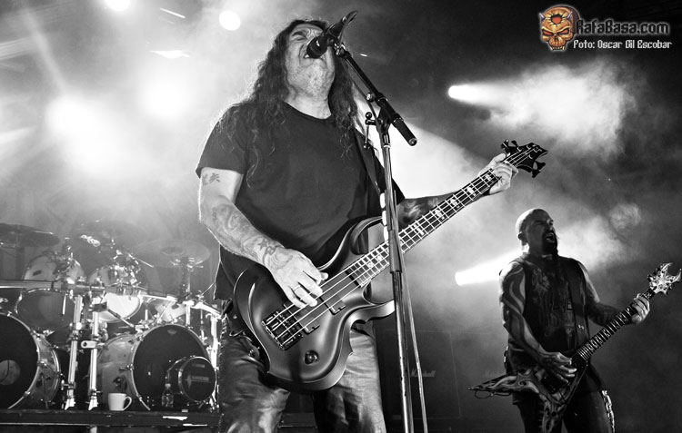 La apertura corrió a cargo del tema que da título a su nueva obra «Repentless», una canción muy potente que sonó un tanto descafeinada por varios motivos. Primero la batería estaba demasiado alta respecto a las guitarras, y segundo daba la impresión de que Tom Araya estaba o calentando la voz, o dispuesto a no forzar demasiado. En cualquier caso «Portmortem» disipó cualquier duda entregándose el público en cuerpo y alma. «Hate Worldwide» de su anterior «World Painted Blood» siguió en la línea, pero después de ésta la desidia y la pesadez más absoluta se apoderaron de la actuación. Entiendo que intenten tocar temas de todas sus épocas, pero «Disciple» y «God Send Death» me parecen dos canciones tediosas, sin gracia y totalmente prescindibles. Si quieren meter algo de esa etapa que toquen «Consfearacy» de «Christ Illusion»; yo por lo menos lo preferiría.