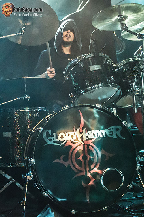 Los siguientes en hacer acto de presencia ante un recinto de lo más animado y expectante serían los chicos de GLORYHAMMER. Luciendo unas pintas impagables, -muy acorde con el personaje que interpreta cada uno de sus miembros-, los escoceses se presentaban ante la audiencia catalana dispuestos a hacernos pasar un buen rato, consiguiendo que a más de uno se le escapará una sonrisa con su disparatada e histriónica puesta en escena y sus jocosos comentarios entre tema y tema. Y es que la nueva aventura de Christopher Bowes resultó ser una invitación vedada a la diversión, gracias a la potencia de un power metal cargado de melodías épicas y matadores estribillos. Precedidos de una futurista introducción «Infernus Ad Astra», GLORYHAMMER tomaron el escenario al asalto con "Rise Of The Chaos Wizards", mostrándonos a una banda con tablas, personalidad y que derrochó, al igual que sucediera con DIVINE ASCENSION, simpatía y buen rollo.
