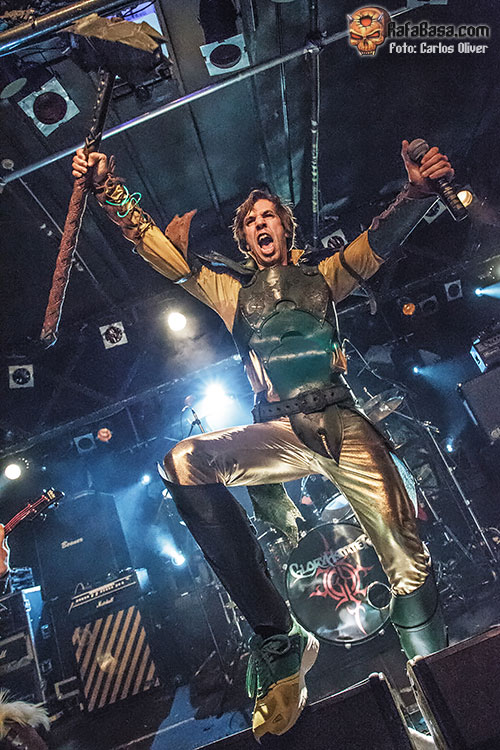 Y es que si algo marcó la presentación de GLORYHAMMER a su paso por la capital catalana fue el buen humor y la simpatía que desplegó el quinteto en escena. De modo que la respuesta del respetable no pudo ser más enérgica y entusiasta a la hora de acompañar piezas como la marchosa «Goblin King Of The Darkstorm Galaxy». El repaso a las diferentes criaturas mitológicas que habitan las composiciones de los escoceses se cerraría con «The Unicorn Invasions Of Dundee», con la que colgarían sus instrumentos dejando un muy buen sabor de boca entre la concurrencia. Si la actuación de GLORYHAMMER fue cuanto menos peculiar, lo cierto es que antes de retirarse definitivamente a los camerinos todavía tendrían tiempo de saludar desde el escenario mientras a través del P.A. sonaba «The National Anthem Of Unst».