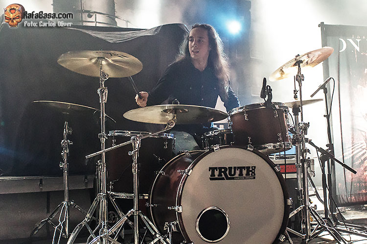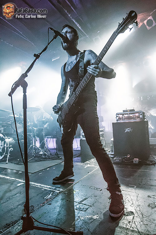 Pese a ser los encargados de romper el hielo DEAD LABEL disfrutaron de un sonido bastante aceptable, lo que acabó propiciando que la gente se fuera animando a medida que avanzaba el show, contagiándose de la energía y la vitalidad que exhibieron en piezas como «Omonius», para la que Dan nos pidió que hiciéramos todo el ruido posible. Un último anticipo de lo que será su próximo trabajo «Throne Of Bones» fue la pieza elegida para cerrar su escueta presentación, «Void».