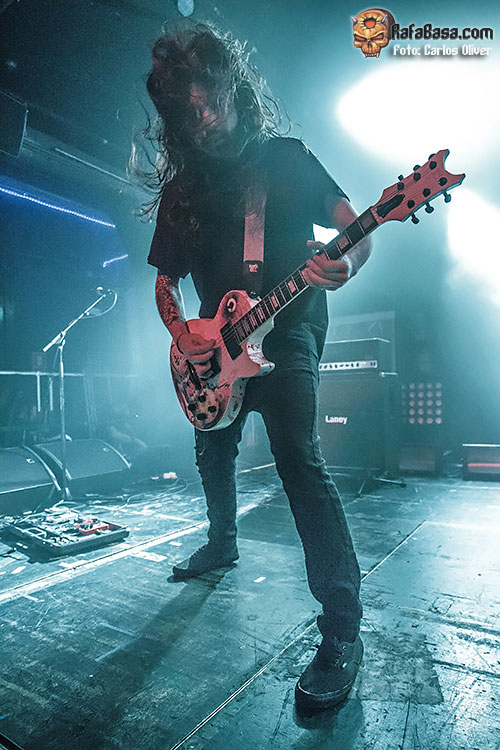 Muy motivados y con la firme intención de conseguir adeptos entre los más curiosos, los irlandeses salieron a escena con el cuchillo entre los dientes, dejando que la visceralidad de «Are You Ready To Kill», sorprendiera a más de uno, gracias a la descomunal pegada de la base rítmica que forman el bajista y vocalista Dan O´Grady y la batería Claire Percival. Tampoco faltarían las atmosferas más tétricas junto a los oscuros riffs de Danny Hall durante el tortuoso «Salvation Is Sacrifice».