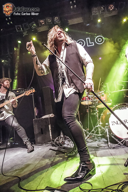 Los encargados de empezar a calentar el ambiente serían los británicos INGLORIOUS, una banda de reciente creación, -de hecho su debut homónimo aún no ha visto la luz-, en la que nos encontramos con el vocalista Nathan James, quien ha colaborado en el pasado con el mítico guitarrista Uli Jon Roth y con TRANS-SIBERIAN ORCHESTRA. Haciendo gala de una puntualidad propia de su país de procedencia, el quinteto aparecía en escena para sorprendernos con los potentes guitarrazos de "Until I Die", dejando claras las raíces clásicas de su propuesta. Y es que el sonido de Inglorious es una crisol que reúne las mejores virtudes del rock británico, tomando elementos de bandas como DEEP PURPLE, WHITESNAKE o THUNDER. Mención especial mereció el fantástico trabajo que realizó Nathan James quien, más que cantar, interpretó los temas, inyectando garra y feeling a piezas como el descomunal "Breakaway".
