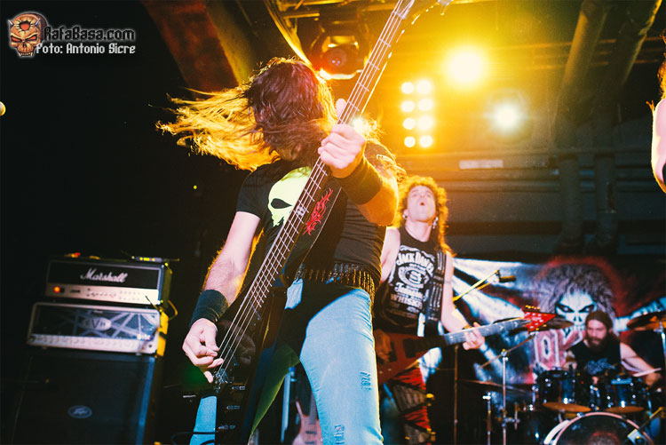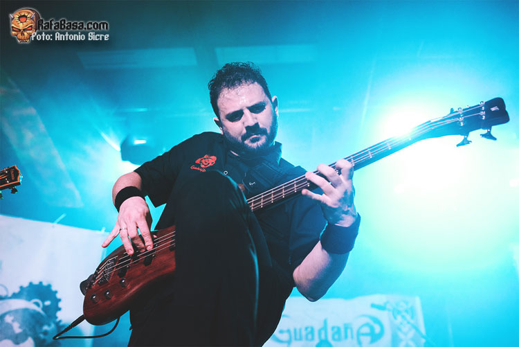 Para sustituirle, tocó Juanma Patrón, quien formó parte de los también gaditanos SPHINX. El cumplió con creces y tocó muy bien, pero con todos mis respetos hacia su trabajo, debo decir que la banda sin Jacob se resintió guitarrísticamente hablando y sobre todo cada vez que tocaba hacer un solo como los que se marca el titular de GUADAÑA. De cualquier forma, un notable alto para Juanma, que, repito, lo hizo muy bien, y más según contó la banda en escena, toco con ellos tras tan solo tres ensayos.