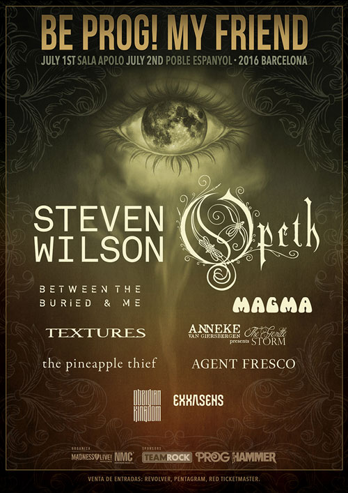Esponsorizados por Metal Hammer y Prog Magazine, en 2016 veremos en Be Prog! My Friend a los co-cabezas de cartel Steven Wilson y sus compañeros y pesos pesados del progresivo Opeth. Steven Wilson, quien editó su último disco Hand.Cannot.Erase a comienzos de este mismo año con el abrumador aplauso de toda la crítica nos comenta: