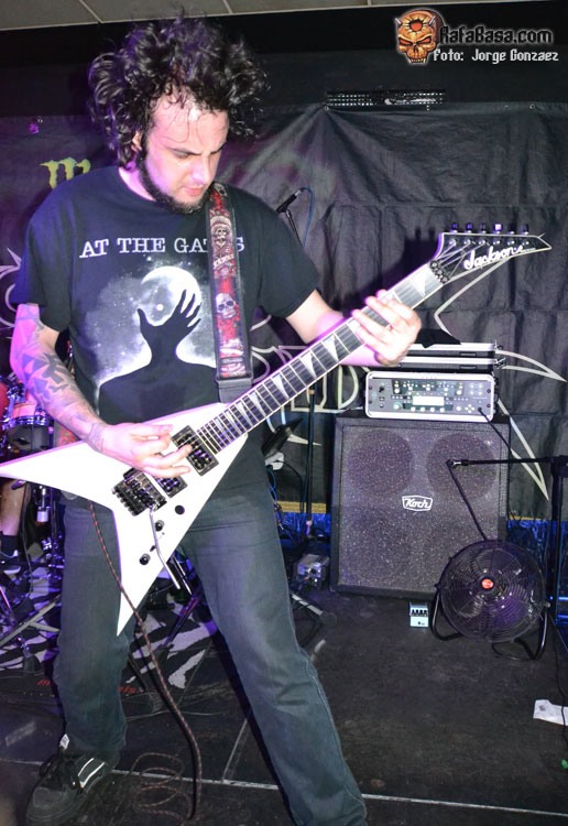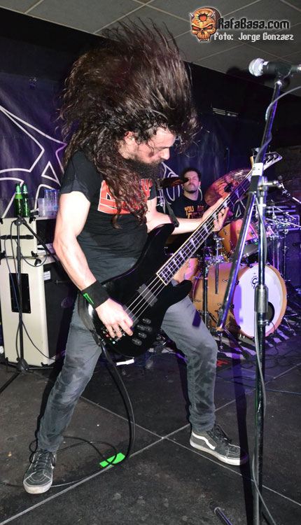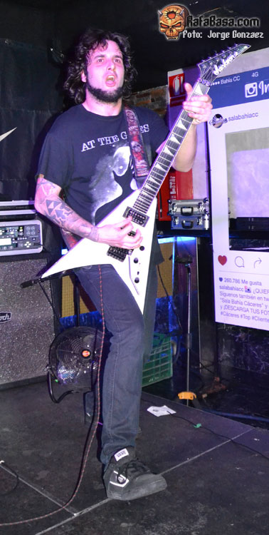 Comienzo frenético que tendría continuación con «Violent Dawn». En estos primeros compases, las guitarras aparecían poco perceptibles dejando la voz y, sobre todo, la batería como instrumentos de más presencia. Pero el problema se subsanó a partir del tercer corte, justo antes Guillermo diera las buenas noches y recordara el tiempo que hacía que su banda no pisaba la capital cacereña. Sí, desde la gira del segundo álbum.