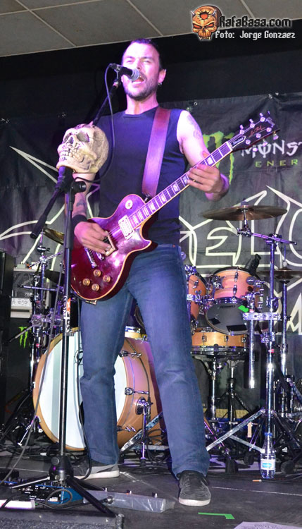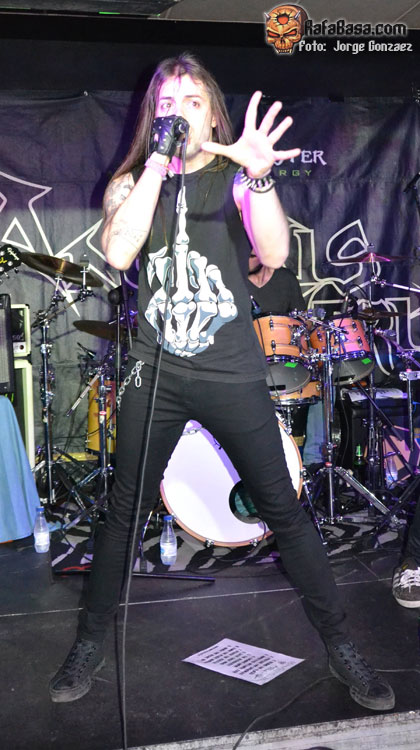 Ahora presentan el quinto, y de él suena «Hidden Evolution», el que lo bautiza, un tema que recuerda bastante a TESTAMENT y que ahora sí, podemos disfrutar de ANGELUS en todo su esplendor. «Vomitive» y «Of Men And Tyrants» se unen de inmediato a la fiesta. Acto seguido, el vocalista bromea con que van a tocar una balada tipo SCORPIONS para que bailemos agarraditos. Esa balada era «End Man» y nos pegamos un buen baile.