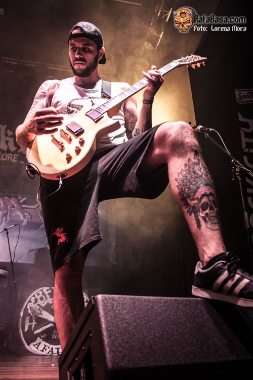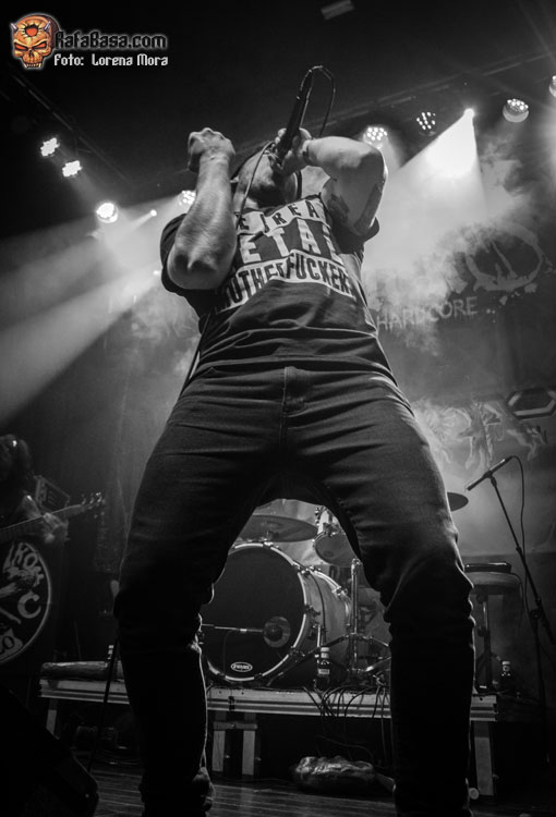 Los siguientes en salir a escena fueron BELLAKO, encargados de acompañar a CRISIX durante su gira española y que con su hardcore macarra y cargado de humor y mala leche pusieron a todos los asistentes a dar botes y formarse los primeros mosh, haciendo que empezaran a subir las revoluciones.