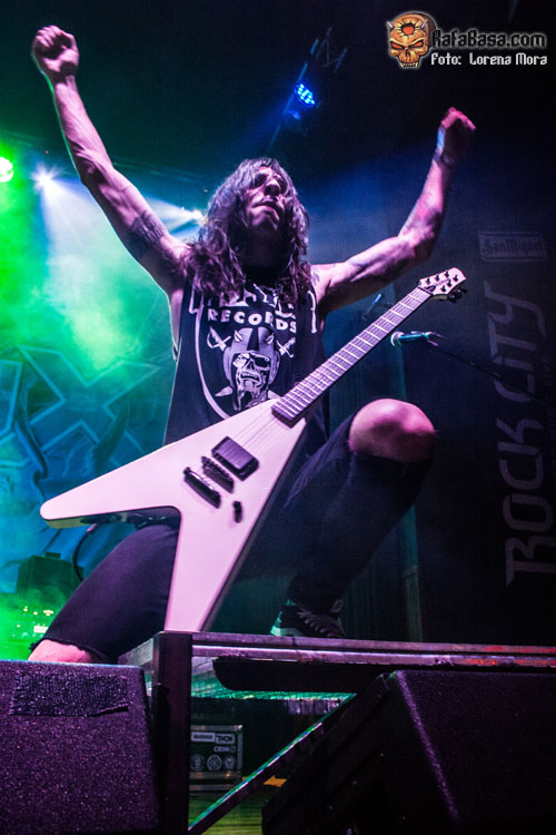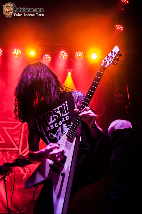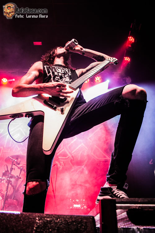 No tardaron en aparecer de nuevo, esta vez con Juli sentado en una silla de ruedas y vestido con una camisa de fuerza siendo llevado por un enfermero para presentarnos Psycho Crisix World, una de sus canciones más desenfadadas que fue bailada y coreada por todos los asistentes. Tocaba ponerse más serios con Fallen, sin duda la canción del nuevo álbum más compleja y llena de matices pero que no hizo bajar la intensidad de un concierto que empezaba a llegar a su final, no antes sin jugar un rato a trastear con algunas versiones, terminando por interpretar el tema de IRON MAIDEN que da nombre al grupo y sin recurrir al ya famoso Football Of Death patentado por la banda que se produjo durante Bring’Em To The Pit y como guinda final su canción estandarte, Ultra Thrash, con la que cerraban un show muy intenso, divertido y que no dejó a nadie quieto en su sitio.