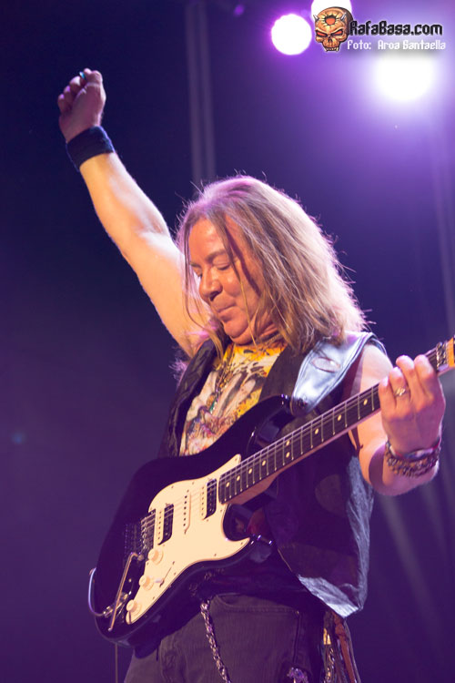 Pero insisto, el sonido para mí malo. Tres guitarras me siguen pareciendo demasiadas para los temas que tienen, sobre todo los antiguos, a veces se monta una bola de sonido que no se distinguen solos, melodías, nada. Y el sonido general muy mejorable, demasiado alto para mi gusto (mucho rebote, estaba en grada), y en general algo que no terminan de mejorar desde que tienen tres guitarras (antes siempre los vi con mejor sonido, aunque siempre fue un tanto irregular).