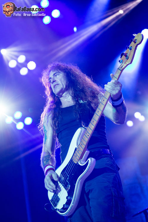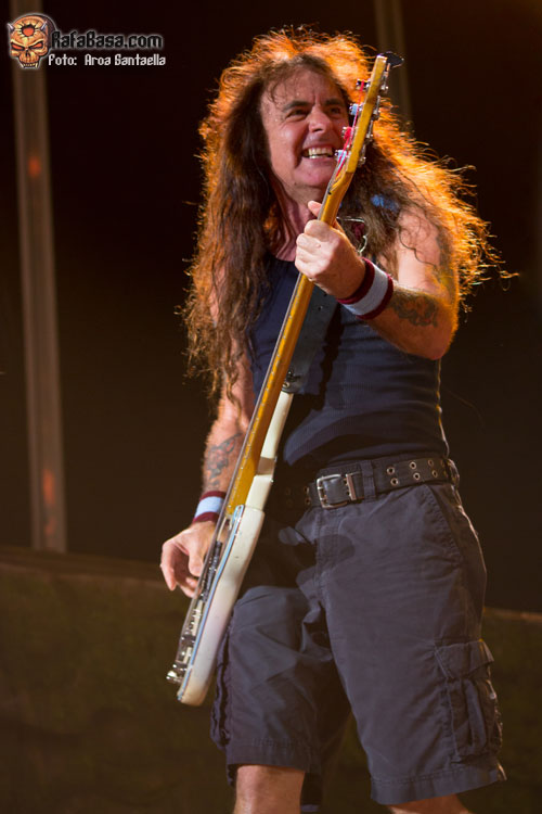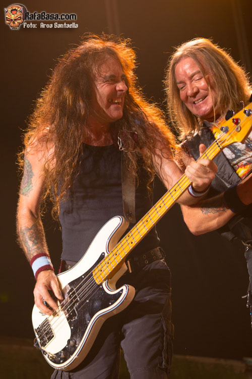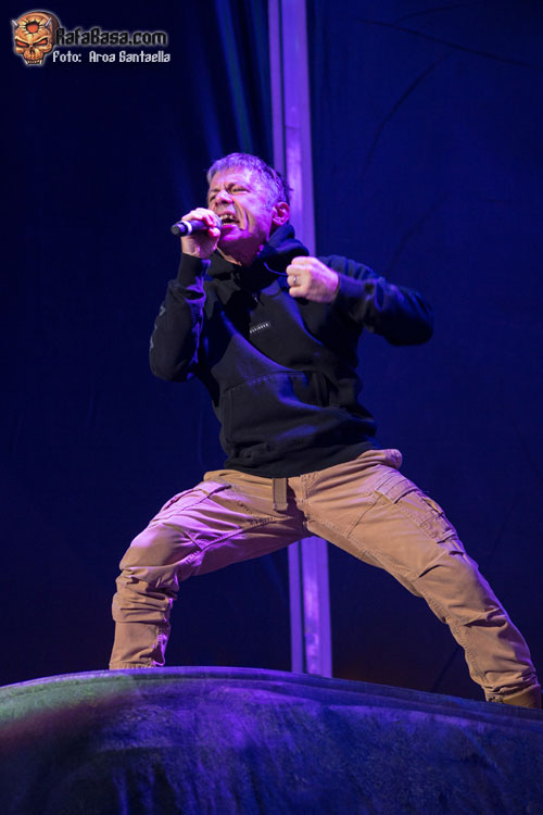 Bruce Dickinson luciendo su indumentaria habitual para el tema, ataviado con su casaca roja de la caballería británica y bandera en mano ondeando al viento mientras Dave Murray y Adrian Smith nos hacen cabalgar a lomos de los mástiles de sus guitarras y Janick Gers se adorna de un lado al otro del escenario. El gran maestro Harris nos acribilla con sus firmes e inconfundibles líneas de bajo llevando el peso rítmico de la banda junto con la artillería desde el asiento de la batería que disparaba Nicko McBrain y por supuesto la pasional entrega del público en los coros nos sumergía de lleno en la batalla de Balaclava en la que se inspira el tema.