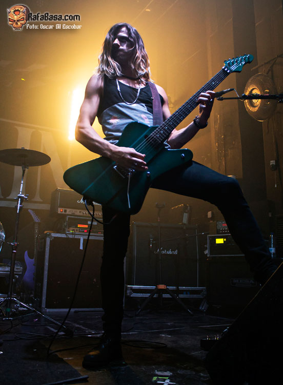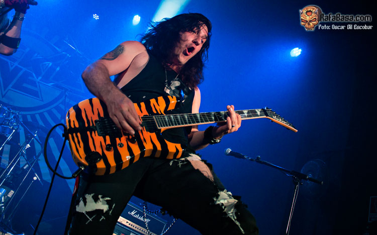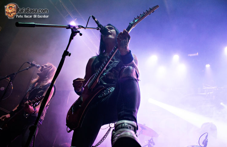 Tras un acceso tranquilo a la sala a pesar de la larga cola que se daba cita horas y minutos antes de la apertura de puertas, arrancaba el show de los rockeros franceses BLACKRAIN. El combo parisino arrancaba su show tirando poco a poco de un público que finalmente terminó bastante enchufado con un sonido afilado y pegadizo al que se suma la aguda voz de Swan creando una atmósfera excelente de hard rock y heavy metal para comenzar la velada. Canciones veloces como «Eat You Alive» o la pegadiza «Innocent Rosie», en las que veíamos una versión mejorada de Swan a la voz, ya que en ocasiones tanto en estudio como en algún directo sus agudos no terminaban de estar bien medidos como en el día de hoy.