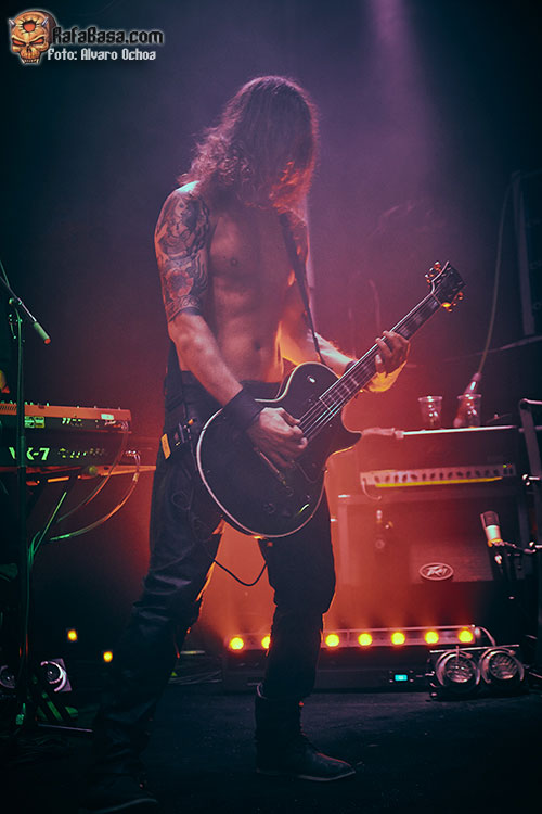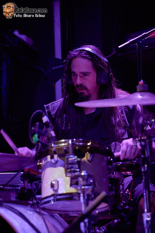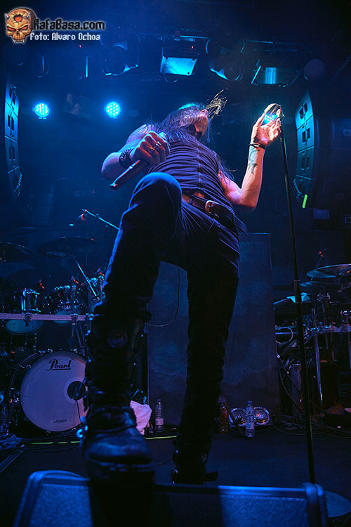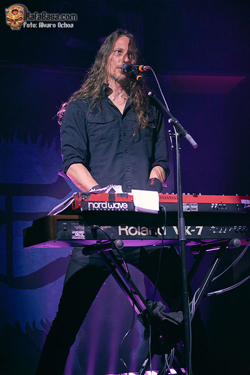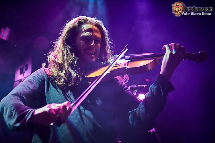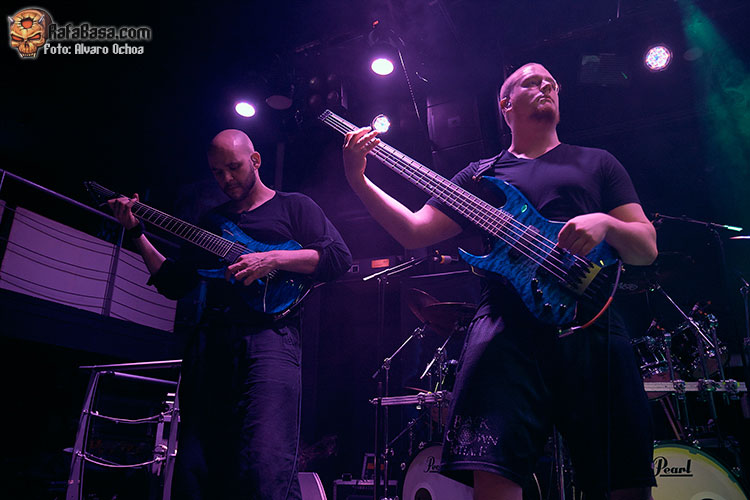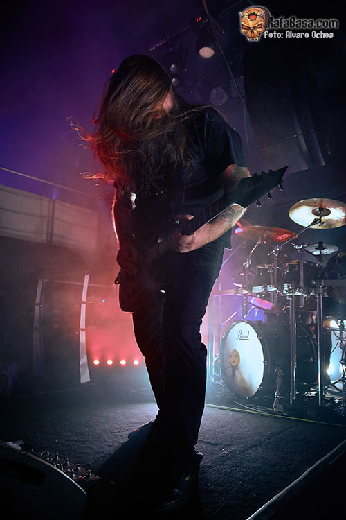 Ahora sí, podemos decir que nos sacamos la espina de NE OBLIVISCARIS. La formación al completo salía desde el principio a degüello con un sonido alucinante y un juego de luces como siempre decimos, hipnótico. Los dos grandes estiletes de su propuesta, las voces de Tim y Xenoyr, limpias y guturales respectivamente, se echaron a sus espaldas todo el peso del directo y comandaron a las ml maravillas una máquina perfectamente engrasada. ¡Qué sonidazo! Base rítmica golpeándote el pecho, guturales estremecedores, y fraseos limpios de guitarra o violín nítidos como si de un concierto acústico se tratara. Pese a los apenas cuatro temas, repartidos entre sus dos discos de estudio, a variedad de registros de estos nos permitió disfrutar de todo un carrusel de riffs, impases, cambios de tempo y derroche compositivo por los cuatro costados.