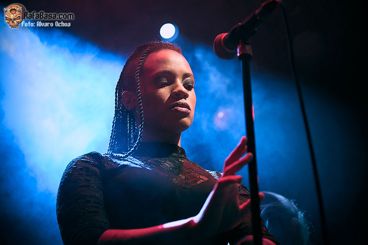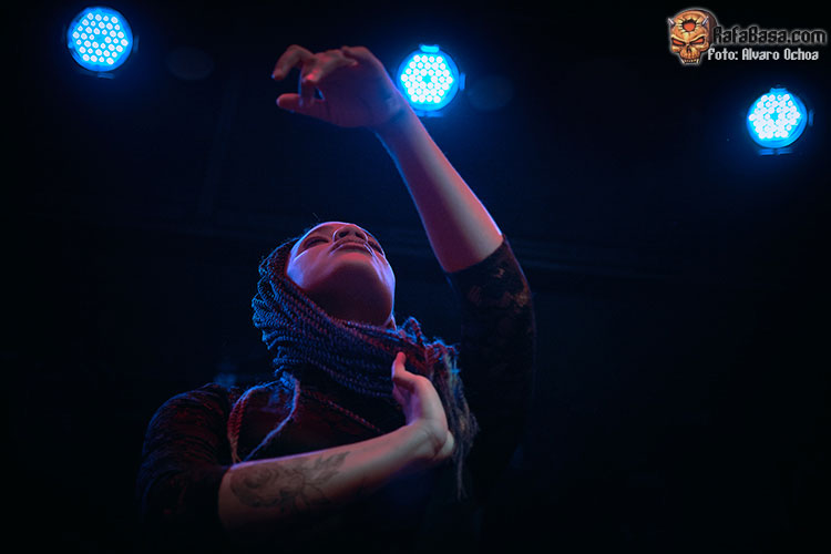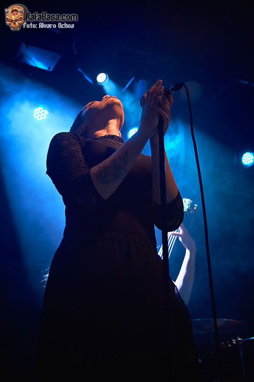 Puntuales como un reloj, incluso algunos minutos antes de la hora fijada salían a escena OCEANS OF SLUMBER, la banda encargada de abrir las fechas de ENSLAVED en su ya larga pero selecta gira de aniversario. La banda americana encabezada por la voz de Cammie Gilbert nace de las cenizas de DEMONICAL GENUFLECTION y anda presentando «Winter», su primer LP estrenado este mismo año. De su primer álbum naturalmente extraían el grosso de temas de su directo: el tema homónimo, «Devout» o «The Last Bridge» no fallaban a un público aún escaso y, a juzgar por lo visto, poco conocedor en su mayoría de la música del sexteto, que en Madrid sin embargo se presentaba como quinteto ante la ausencia de su teclista. La ausencia sin embargo pronto sería suplida por la presentación en escena de Lindsay Schoolcraft. Nada menos que la teclista/vocalista canadiense de CRADLE OF FILTH acompañaba a la banda en coros y teclado en un par de temas para sacar del letargo a un público que poco a poco iba entrando en calor. Concierto sin embargo y en líneas generales plano aunque correcto, del que únicamente cupo destacar la preciosa y trabajada voz melódica de Cammie, y la versión que se hicieron del «Wolf Moon» de TYPE O NEGATIVE. El legado de los del malogrado Peter Steele es siempre bien recibido, aunque a un «Solitude» de CANDLEMASS, que también se cuenta entre su repertorio, tampoco lo habría hecho ascos.