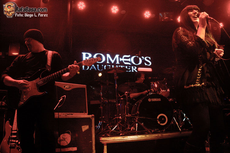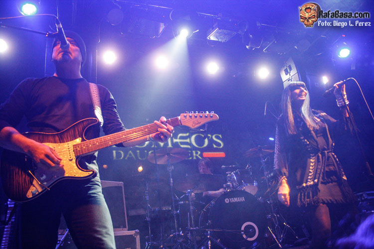 Comenzando por unos ROMEO’S DAUGHTER que durante casi tres cuartos de hora hicieron su presentación en los escenarios madrileños desplegando su elegante propuesta con una encantadora Leigh Matty al frente trasmitiendo simpatía y calidez con su maravillosa voz, bien acompañada en los coros por el fino guitarrista Craig Joiner y por el correcto bajista Ed Poole formando base rítmica con el batería Andy Wells.