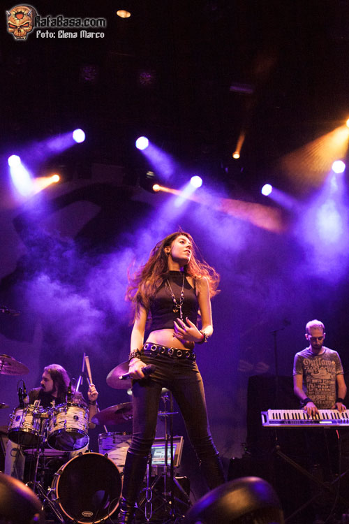 A la hora prevista para el inicio de las actuaciones el ambiente en el recinto era todavía muy frío, con mayor afluencia en los dos anfiteatros superiores que en la propia pista. Comandados por Federica Faith Sciamanna, la formación de Viterbo nos presentó una propuesta heterogénea y contundente, en la que no faltaron los elementos electrónicos, los pasajes progresivos y algunas pinceladas de corte gótico. Y es que la vocalista se mostró como el motor indiscutible de la banda, haciéndose cargo también de la guitarra rítmica y los sintetizadores mientras no dejaba de agitar la cabeza violentamente.