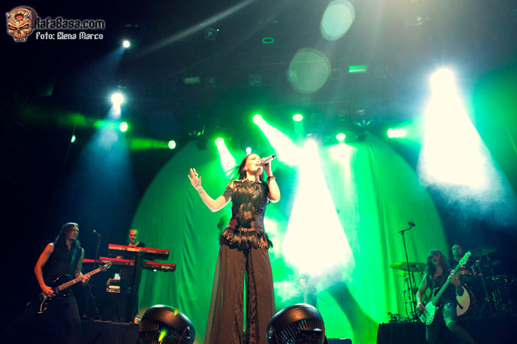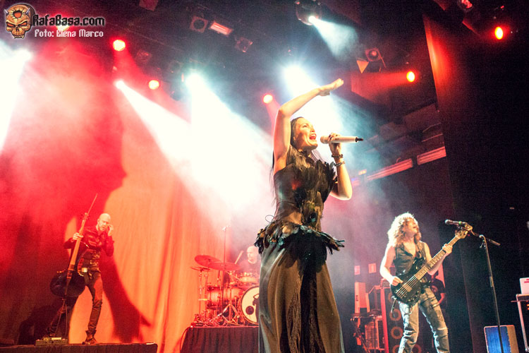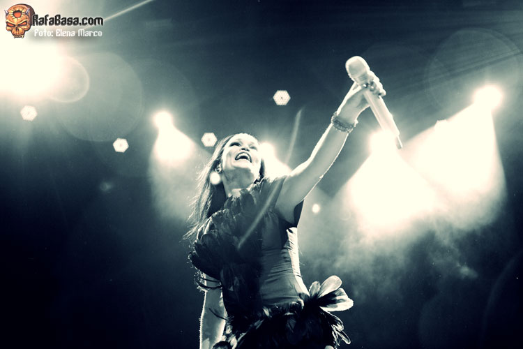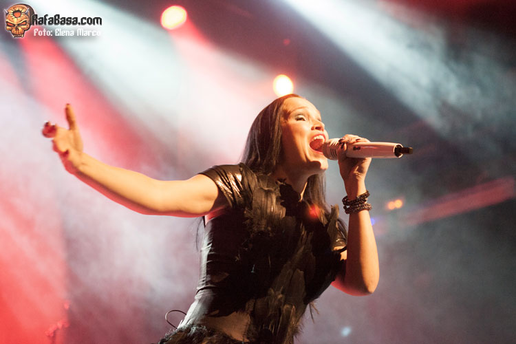 Haciendo gala de su dominio de nuestro idioma la diva nos daba las buenas noches antes de encandilándonos con la sutileza lírica de "500 Letters" y sus vibrantes in-crescendos instrumentales comandados por el violonchelo del ex -APOCALÍPTICA Max Lilja, que situado sobre una pequeña tarima en la parte trasera del escenario se mostró como una piezas clave para el sonido de la banda. Poco a poco la noche seguiría caldeándose con el contraste que supondrían los desarrollos melódicos y elegantes de "Eagle Eye" y la descomunal "Demons In You ", una de las composiciones más contundentes de su última obra que sonó aplastante en directo.
