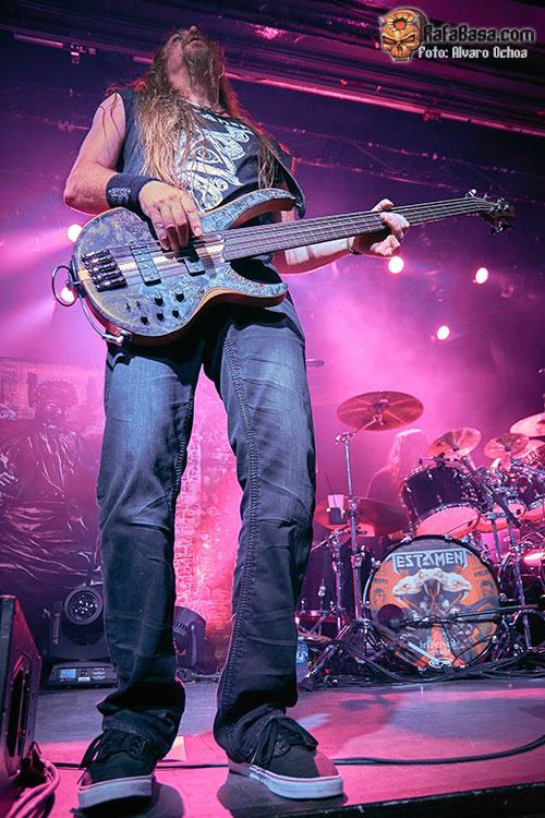 Era el turno de los gigantes del thrash TESTAMENT. Los californianos venían presentando su «Brotherhood Of Snake» recién salido del horno y para ello escogieron un set list con muchos temas de sus tres últimos álbumes y tan solo cuatro clásicos antiguos. No obstante, no defraudaron y la calidad de sus tres últimos discos los avalan. La sala a esas alturas estaba ya a tope de gente.