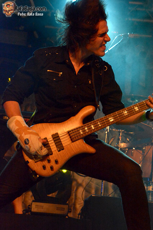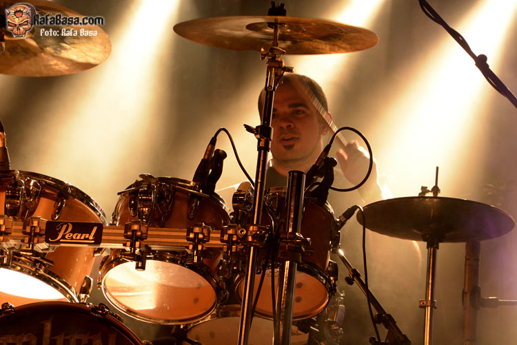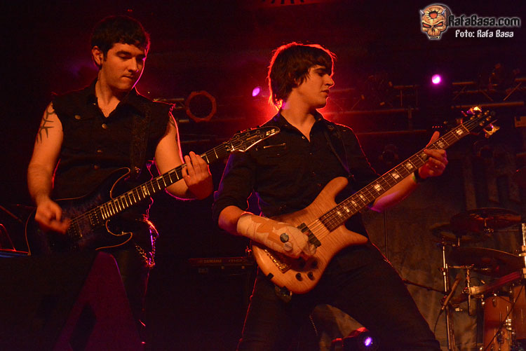 El resto de la banda, como digo, posee mucho empaque y nivel, y está formada por Gauss y Iosu a las guitarras, quienes se turnan en solos y protagonismo, DaniRocks al bajo, quien tuvo que tocar con una mano maltrecha y vendada por un reciente accidente, pero dio la talla, David KBD y Diego al os teclados, cada cual situados a izquierda y derecha de la tarima del batería Jon, quien demostró ser de los más destacados.