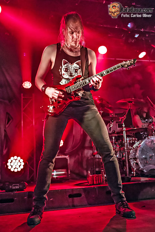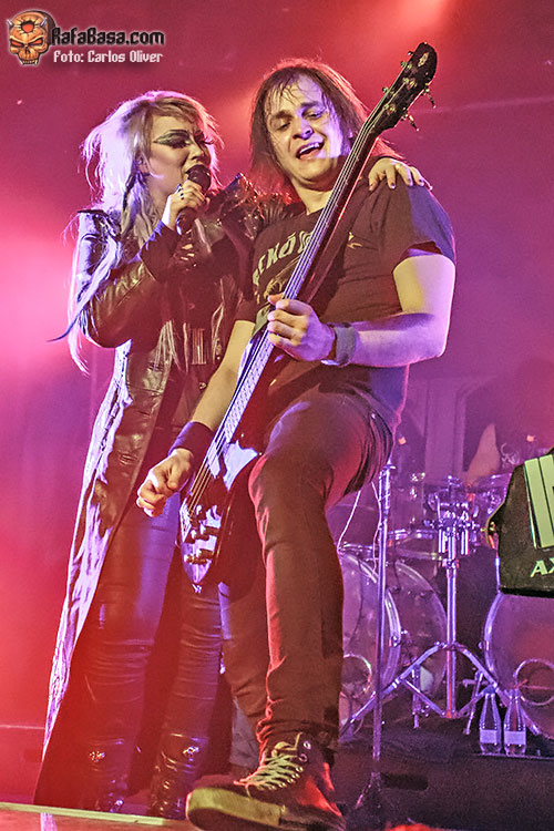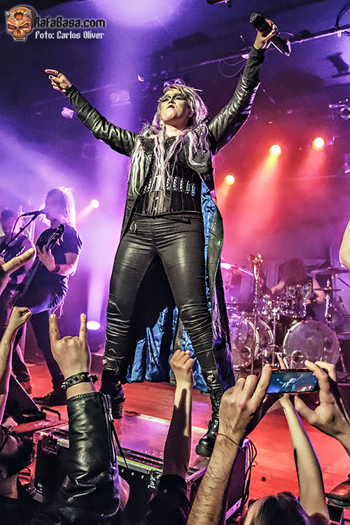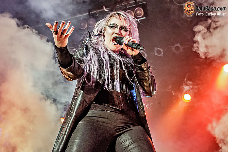 Aunque en esta ocasión la vocalista optó por un look menos llamativo que en anteriores ocasiones, lo cierto es que su personalidad y presencia escénica acabarían convirtiéndose en el mejor reclamo para que las gente se dejara arrastrar por las andanadas metaleras que encerrarían piezas como «Bringer Of Pain». En cuanto al nuevo fichaje de la banda, Joona Björkroth, se mostró preciso y muy integrado con el resto de sus compañeros, haciéndose cargo de la mayoría de los solos. Para sellar la unión entre la banda y sus incondicionales la vocalista no dudaría en invocar a la hermandad metalera antes de atacar el melódico medio tiempo «Familiar Hell», que les servía para redondear una vibrante tripleta de apertura con temas de su último trabajo. El primer recuerdo de la noche llegaría con «In The Heart Of Danger», que nos abocaba sobre los aromas ochenteros del primer trabajo que Noora grabó con la banda en 2013.