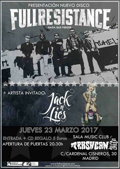 Mañana 23 de marzo, FULLRESISTANCE se presentan en Trashcan Music Club – TCMC, junto a JACK’n’LIES