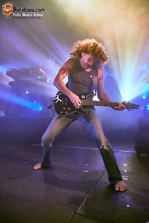 Poco tendríamos que esperar para tener sobre las tablas a unos PAIN OF SALVATION enormes ya desde que comenzara su actuación. Daniel sigue siendo ese artífice que lidera todos los procesos, pero dando cancha a todos sus músicos para expresarse libremente. De hecho, si esa noche se descuida, el joven guitarrista Ragnar Zolberg le termina robando la cartera, pues nos dejó alucinados a todos con su buen hacer, no sólo con su instrumento, sino con sus coros y segundas voces, la mayoría de ellas doblando la tercera por encima del tono principal de Daniel. ¡Una pasada!