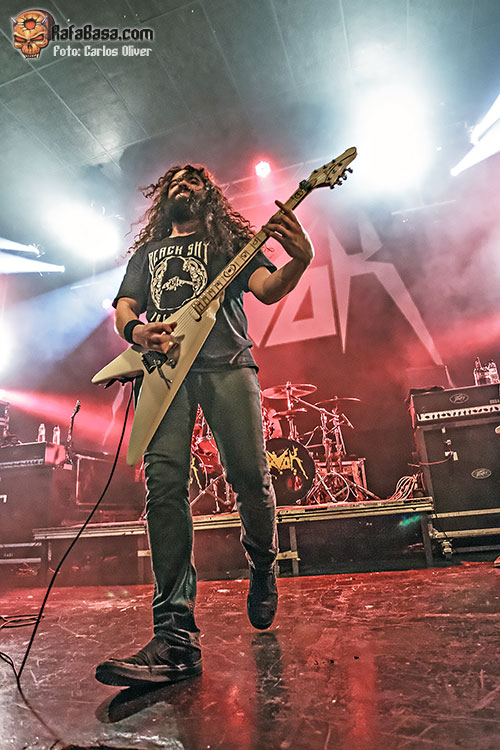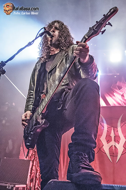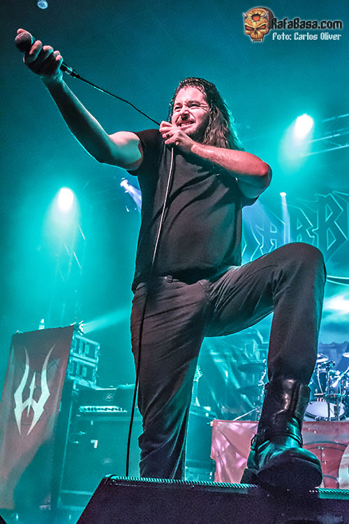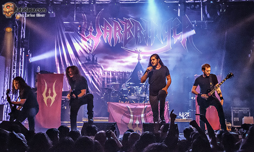 Con el ambiente ya muy caldeado llegaba el turno de uno de los platos fuertes de la noche, WARBRINGER. Hacia bastante tiempo que los thrashers californianos no se dejaban ver aquí, así que había muchas ganas de comprobar como sonaban en directo las composiciones de su última entrega «Woe To The Vanquished». Tan expeditivos como de costumbre, y con las novedades del bajista Jessie Sánchez y el guitarrista Chase Becker, la voracidad del quinteto liderado por el alocado vocalista John Kevill nos hizo agitar frenéticamente la cabeza desde que irrumpieran en escena para asediarnos con los certeros riffs de «Silhouttes», logrando que las primeras filas se pusieran en movimiento para convertir la pista en una batalla campal.