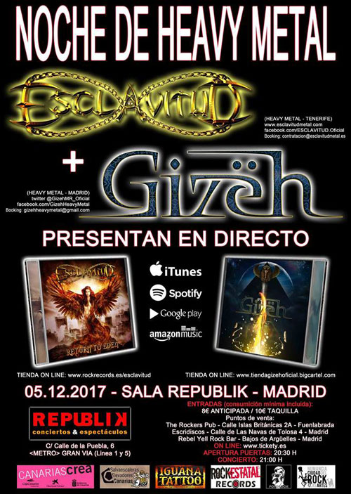ESCLAVITUD de gira por la Península, presentando "Return To Eden". En Madrid con GIZËH el 5 de diciembre