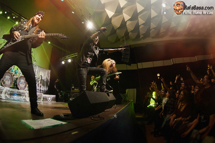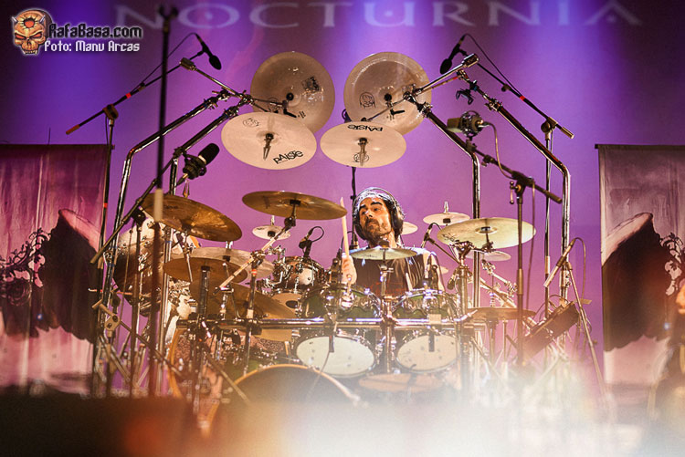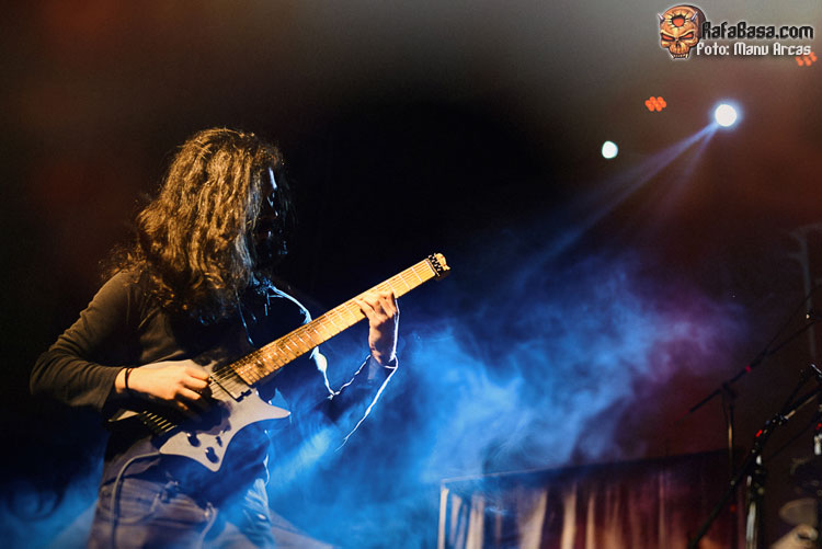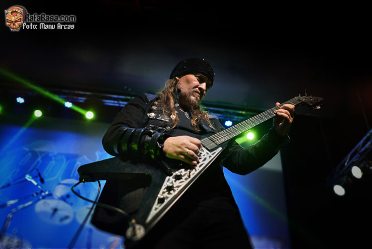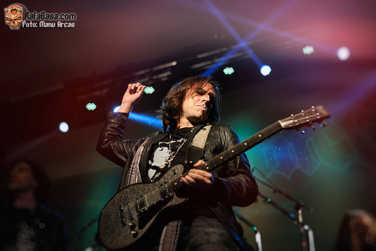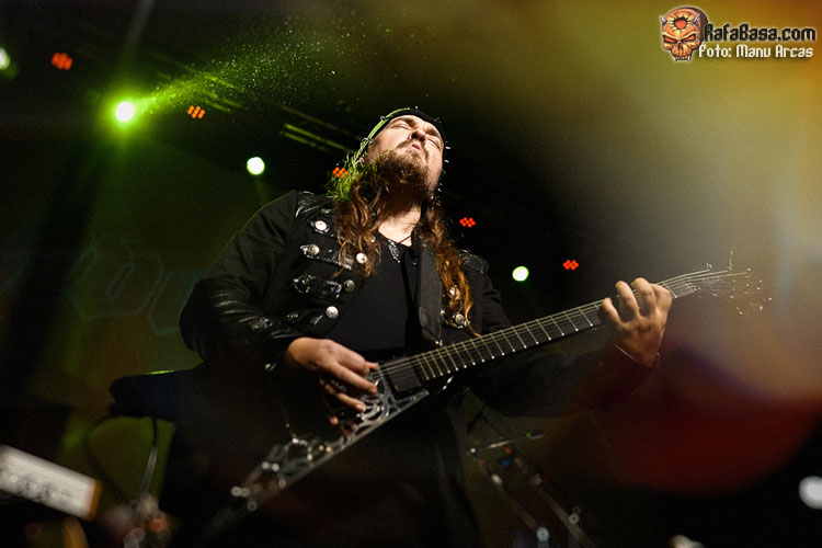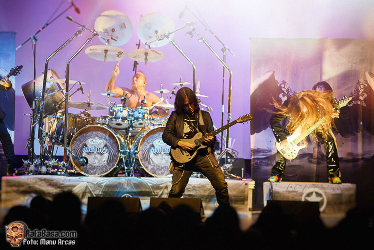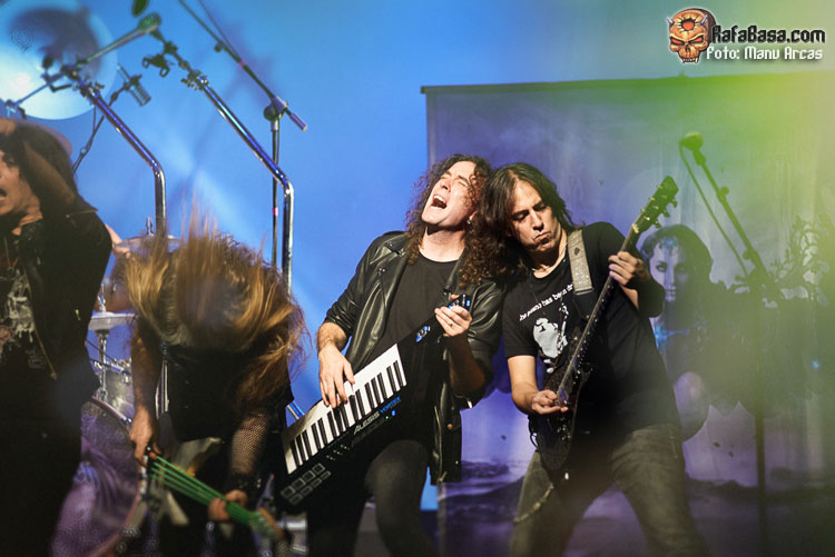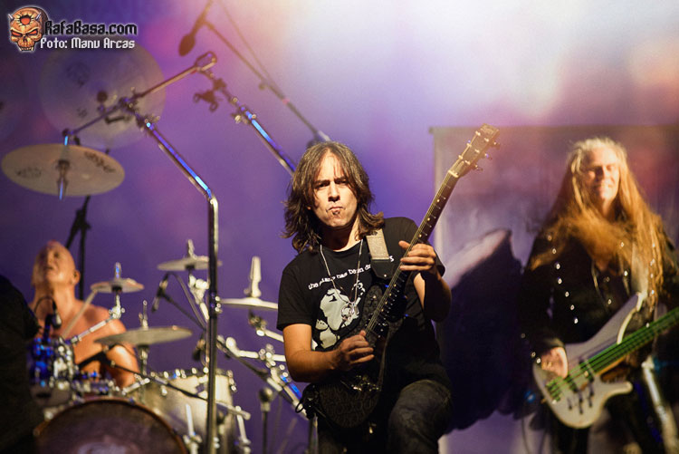 Tras mi presentación, sonó una intro instrumental pregrabada, a modo de banda sonora de película, con fragmentos de los principales temas del «El Ángel…» y luego, como últimamente es habitual, Alberto Rionda tocó en solitario «Santa Bárbara». A renglón seguido, la banda fue apareciendo encima del escenario, con Terrana tras sus tambores pegándole con violencia y poniendo en marcha una gran «Tierra De Nadie», -precedida de «Hacia La Luz»-, que rápidamente encendió a las más de cuatrocientas personas que allí estábamos. Desde el inicio, cada integrante dio pruebas de su virtuosismo, con Magnus Rosén destacando por encima de sus compañeros, enrabietado.