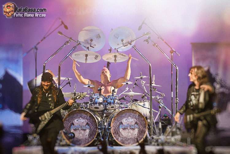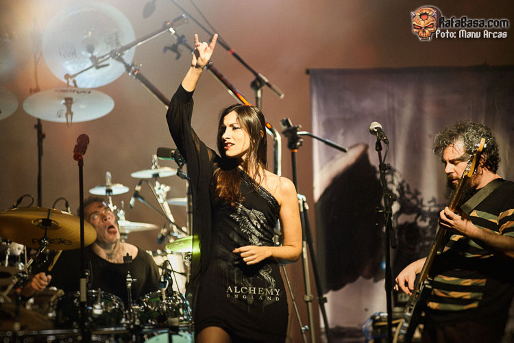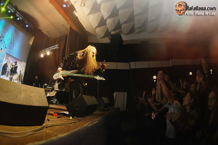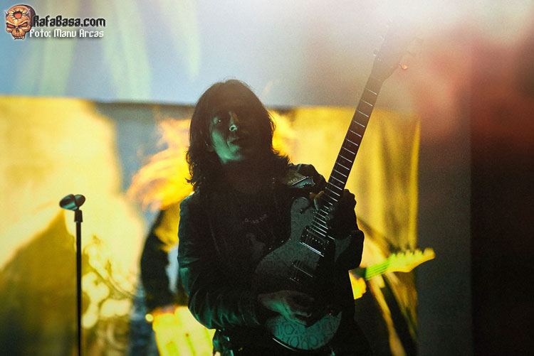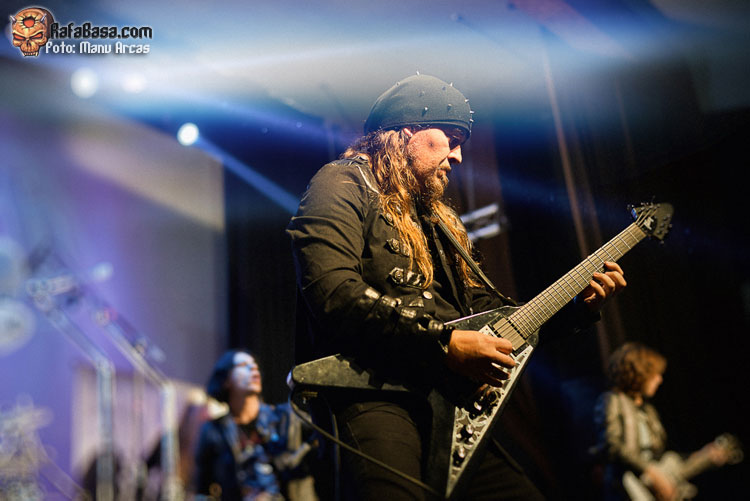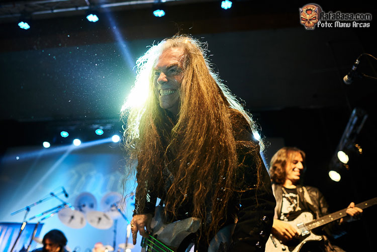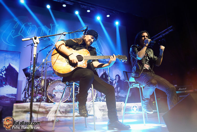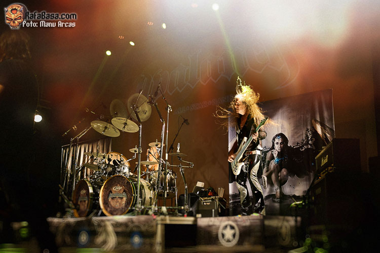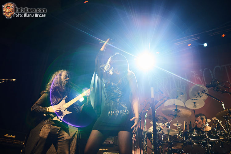 Tras mi presentación, sonó una intro instrumental pregrabada, a modo de banda sonora de película, con fragmentos de los principales temas del «El Ángel…» y luego, como últimamente es habitual, Alberto Rionda tocó en solitario «Santa Bárbara». A renglón seguido, la banda fue apareciendo encima del escenario, con Terrana tras sus tambores pegándole con violencia y poniendo en marcha una gran «Tierra De Nadie», -precedida de «Hacia La Luz»-, que rápidamente encendió a las más de cuatrocientas personas que allí estábamos. Desde el inicio, cada integrante dio pruebas de su virtuosismo, con Magnus Rosén destacando por encima de sus compañeros, enrabietado.