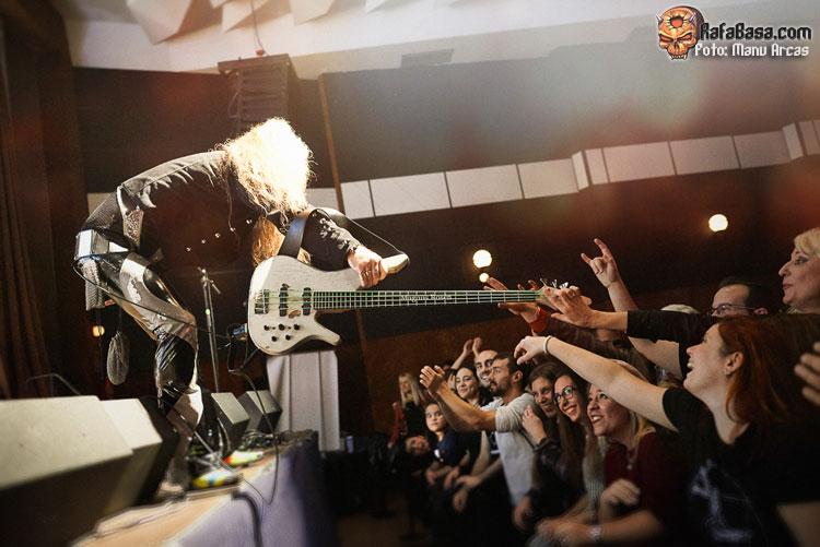 ¿Israel Ramos? Los que me leéis habitualmente ya sabéis que siempre he dicho lo mismo sobre él. A mi me parece un excelente vocalista, con una voz maravillosa, elegante, que domina todos los tonos, especialmente los más melódicos. Isra se ha acoplado muy bien a los temas de AVALANCH, dándole poder, cantando en tonos altos, y dando la talla. Es claro que no tuvo «su noche» en LEYENDAS DEL ROCK, -ya lo conté en mi crónica-, pero esta noche en Arganda cantó maravillosamente, incluso superando las expectativas, dándolo todo y poniendo el listón muy alto.