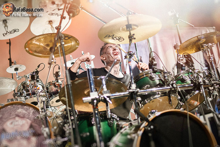 ¿Y Mike Terrana? ¡¡Dios mío, como tocó este tío!! Dio una lección de pegada, bestialidad, técnica, poderío… Fue y es «lo más de lo más». ¡Cómo sonó su batería!! ¡¡Que gran solo se marcó!! ¡¡Qué energía sobrenatural!! Sin duda es y fue lo mejor de la noche, y de muchas más noches. En la actualidad verle en directo con AVALANCH es «mucho». Además el tío no para de hacer malabares con sus baquetas, hacer redobles y contratiempos imposibles, sus bombos te penetran. Es perfecto, magnífico, y lo fue esta noche, sin duda.