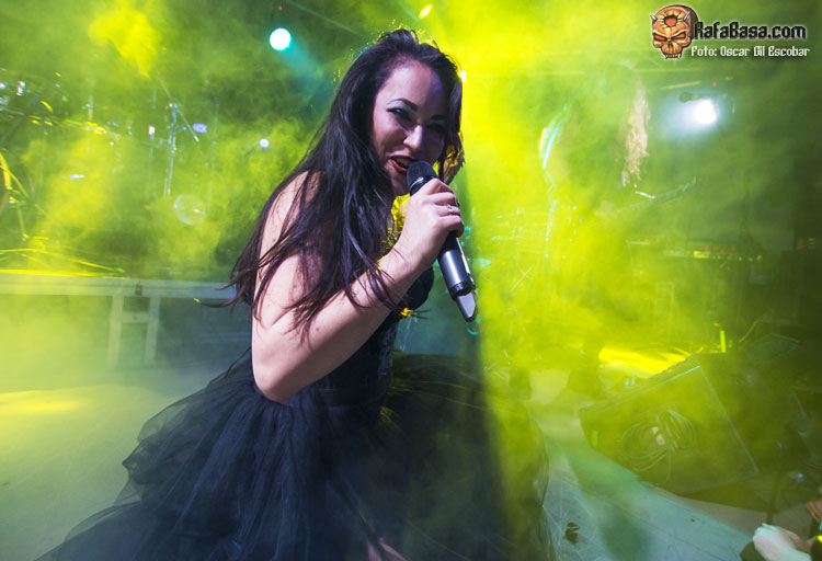 “Temple of New Jerusalem” les quedó bastante bien, de hecho con ella constaté la sensación de que los temas de la ópera suenan bastante bien en directo, mejor de lo que en principio pudiera parecer escuchándolos en el disco. Tras ella, otro clásico matador, un “An Arrow from the Sun” precioso donde todos los vocalistas y músicos se lucieron, engalanando uno de los mejores temas en la historia del metal sinfónico. Linnéa dejó alargada su última nota de la segunda estrofa, justo hasta el cambio de acorde, doblando su cuerpo hacia atrás, para algarabía de un respetable cada vez más entregado al talento de la joven cantante.