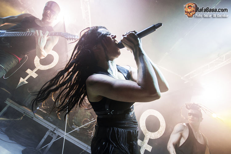 Salieron todos los músicos para interpretar “Theme of the Antichrist”, realizando Vidal y Pálhsson las primeras voces en coro de la primera estrofa, apareciendo los tres vocalistas principales escalonadamente en cada uno de los fragmentos posteriores. Pronto llegaría el primero de los clásicos, un “Blood of Kingu” potente, que sonó bestial. “Din” les quedó brutísima, con la vocalista de NULL POSITIV Elli Berlin haciendo las partes guturales, en contraste con la relajada “Bring Her Home” que volvía a poner la ópera “Beloved Antichrist” sobre la palestra.