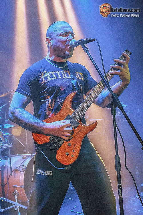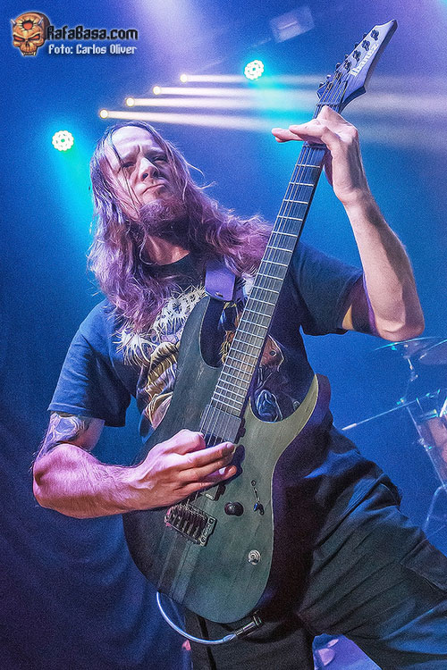 A estas alturas del show la comunión entre la banda y sus seguidores era ya absoluta, así que todos coreamos la melodía central de “Land Of Tears”, que nos allanaba el camino hacia las pantanosas sonoridades de “Prophetic Revelations” mientras el escenario quedaba oculto tras una densa nube de humo. Tras presentarnos a sus actuales compañeros Patrick nos anunciaba el último tema de la noche “Presence Of The Dead”.