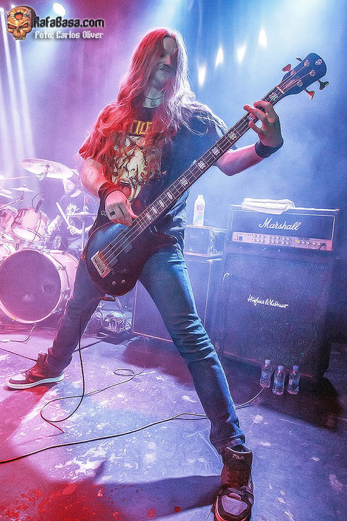 Ante una sala prácticamente llena llegaba el momento de abandonarse a la nostalgia, de volver a disfrutar del pasado con una banda que parece a dispuesta a recuperar el tiempo perdido. Arrancaron como si fueran un vendaval desatado, poniendo toda la carne en el asador para hacer mover al personal en un primer tramo delirante, en el que se concentraron en ofrecernos un exhaustivo repaso de su prometedor debut “Malleus Maleficarum”. Las primeras en sonar, para sorpresa de gran parte de los presentes, fueron “Malleus Maleficarum/ Antropomorphia”, sumergiéndonos de lleno en su despiadada velocidad, con un Partrick al que se vio algo forzado al tratar de emular las líneas vocales que originalmente grabó Martin Van Drunen.